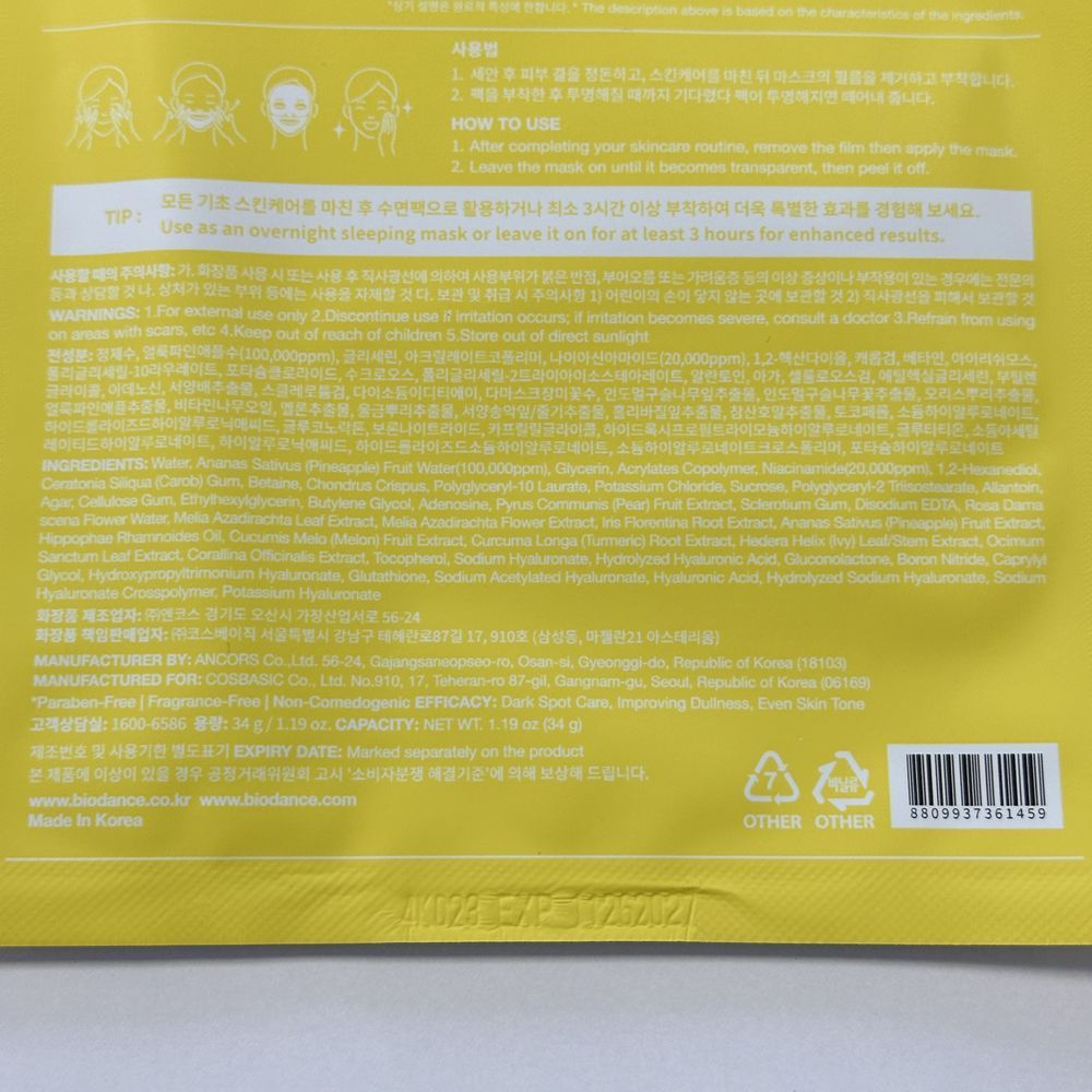 Осветляющая гидрогелевая маска с ниацинамидом BIODANCE Radiant Vita Niacinamide Real Deep Mask