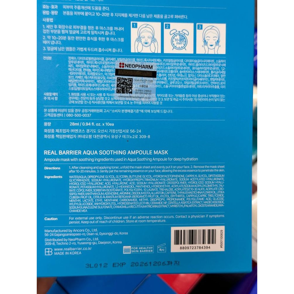Успокаивающая ампульная тканевая маска REAL BARRIER Aqua Soothing Ampoule Mask