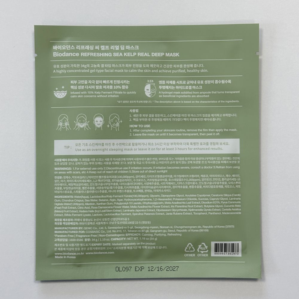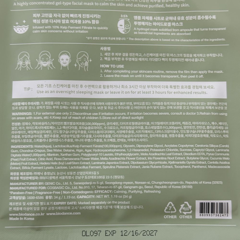 Успокаивающая гидрогелевая маска BIODANCE Refreshing Sea Kelp Real Deep Mask