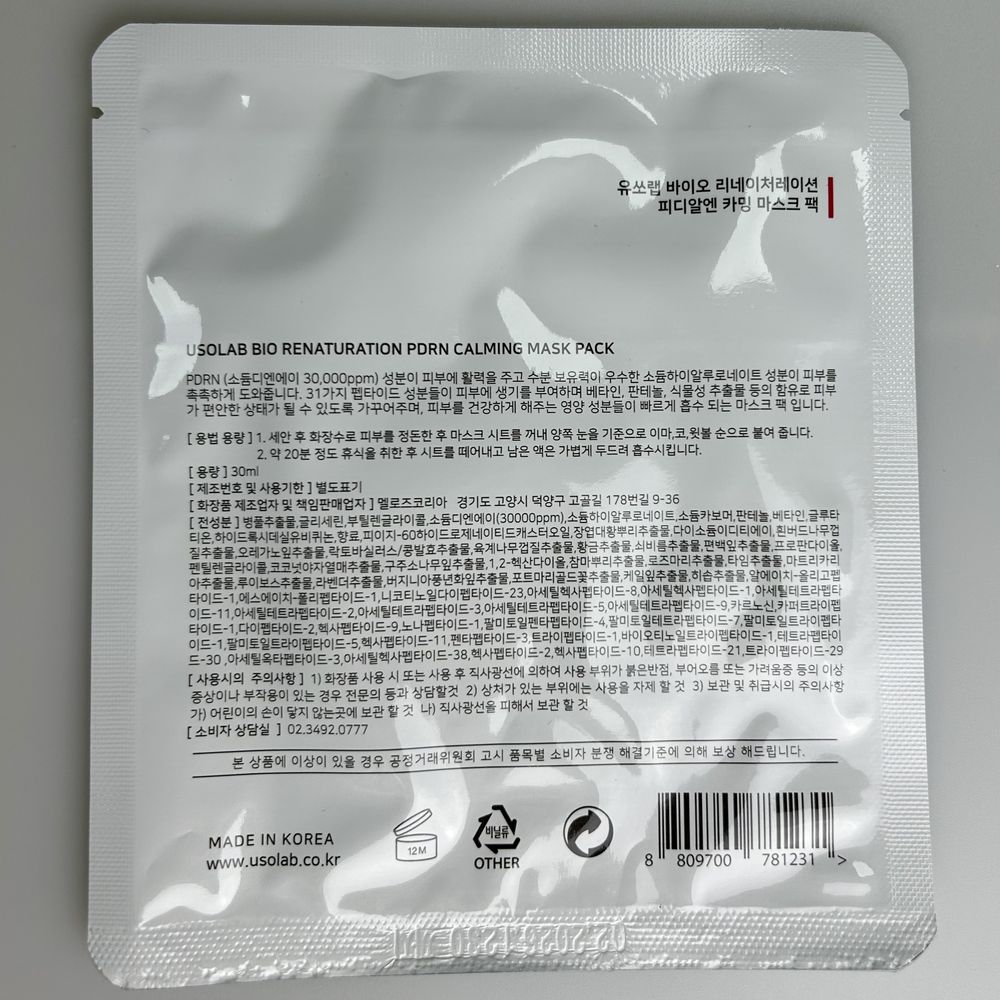 Успокаивающая тканевая маска на основе ПДРН и полипептидного комплекса USOLAB Bio Renaturation PDRN Calming Mask