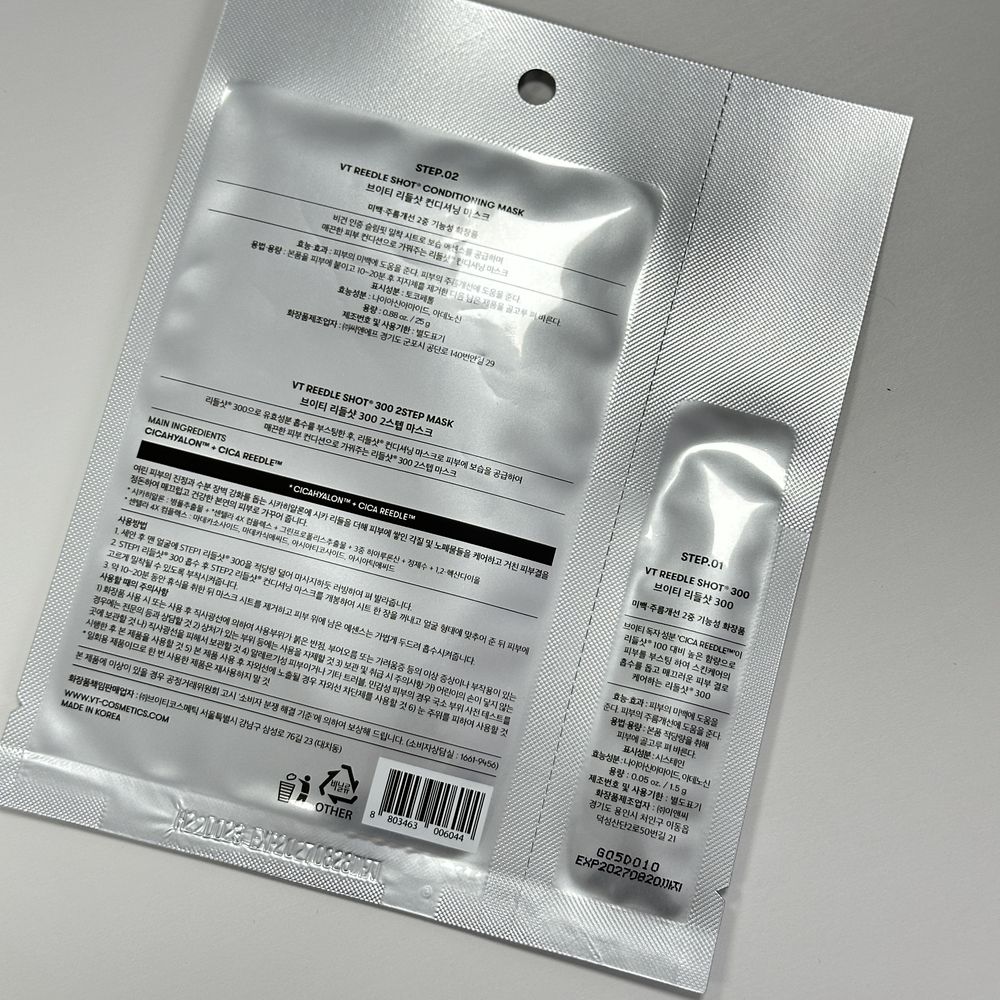 Двухэтапная маска с высокой эффективностью для заметного улучшения текстуры кожи как после салонной процедуры VT Mild Reedle Shot 100 2-step Mask: