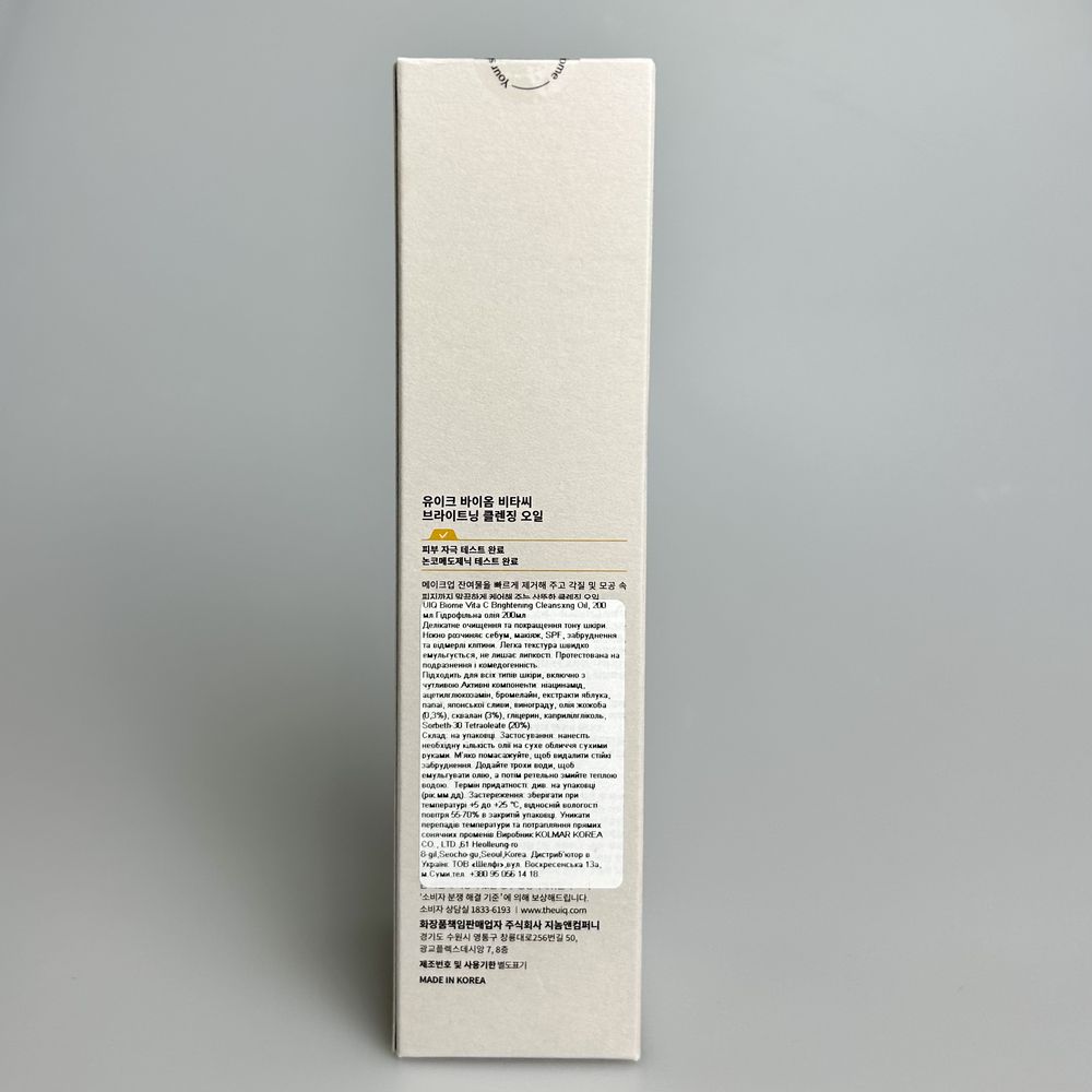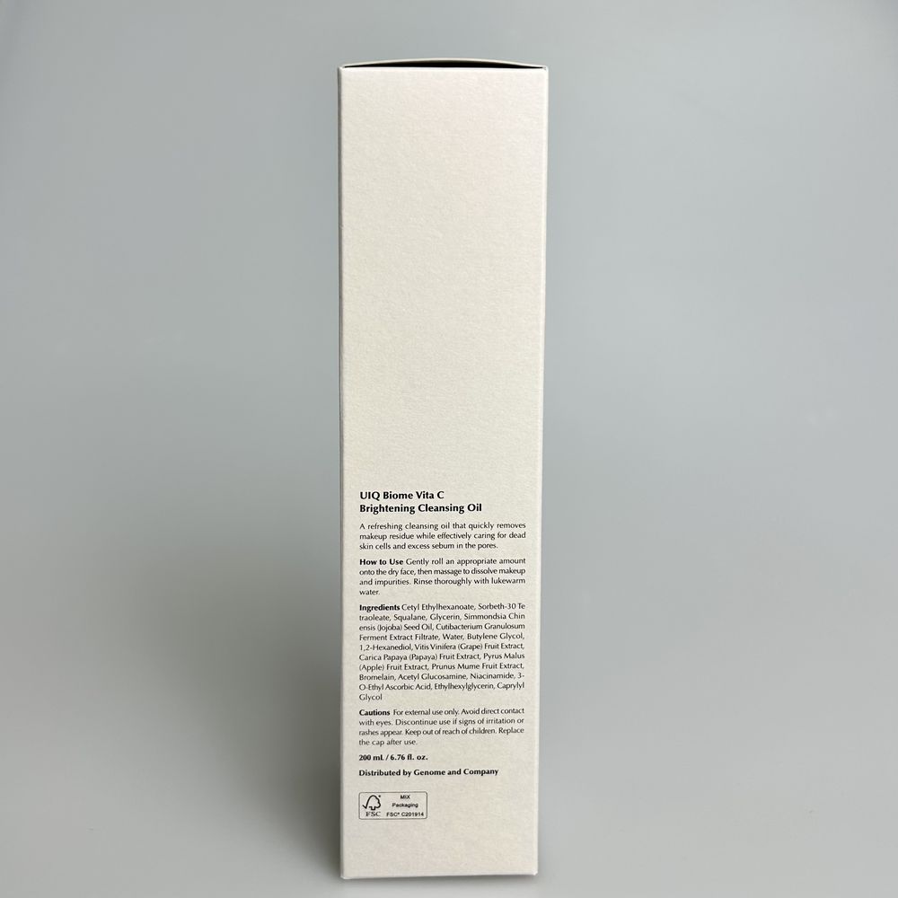 Очищающее масло с витамином С помогает выровнять тон кожи и придаёт ей сияние. Легко удаляет пыль, грязь, избыток кожного жира, все виды макияжа, включая водостойкую декоративную косметику. Уникальный состав средства не пересушивает кожу и не нарушает природный водный баланс. Помогает избавиться от чёрных точек, восстановить микробиом и укрепить защитные функции. Успокаивает воспаления и раздражения различного характера, улучшает увлажнённость и микрорельеф кожи. Стимулирует обновление клеток дермы, устраняет тусклость, разглаживает и улучшает текстуру. UIQ Biome Vita C Brightening Cleansing Oil деликатно удаляет ороговевшие клетки для гладкой и ровной кожи. Подходит для всех типов кожи, включая чувствительную и склонную к акне. Лёгкая, почти водянистая текстура масла превращается в нежную эмульсию за 3 секунды и растворяет все загрязнения. Легко смывается водой, не оставляя маслянистых следов или жирной плёнки.