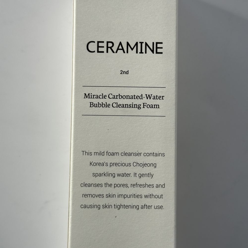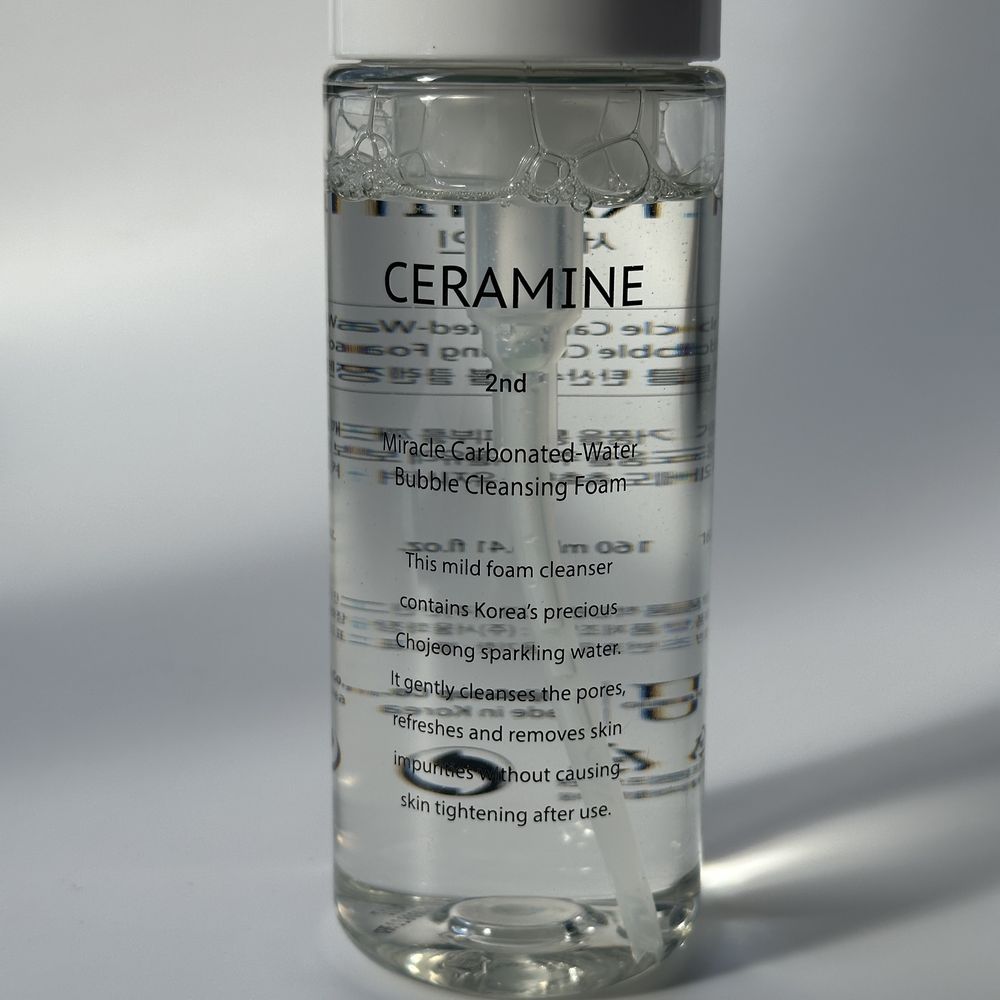 Мягкая пенка с газированной минеральной водой для очищения кожи лица от повседневных загрязнений, пыли, остатков косметики и макияжа. Пенка благодаря микропузырькам усиливает местную микроциркуляцию и глубже очищает поры от грязи и себума, оставляя кожу чистой и сияющей. Кроме очищения, Ceramine Miracle Carbonated-Water Bubble Cleansing Foam увлажняет, предотвращает трансэпидермальную потерю влаги и освежает кожу. Флакон оснащен удобным дозатором, и при нажатии нежная муссовая текстура моментально превращается в пенку с мелкими пузырьками. Формула с исключительно мягкими ПАВами, которые не раздражают и не пересушивают кожу. Средство подходит для повседневного использования, в том числе для чувствительной и сухой кожи. После умывания остаются комфортные ощущения свежести и чистоты.