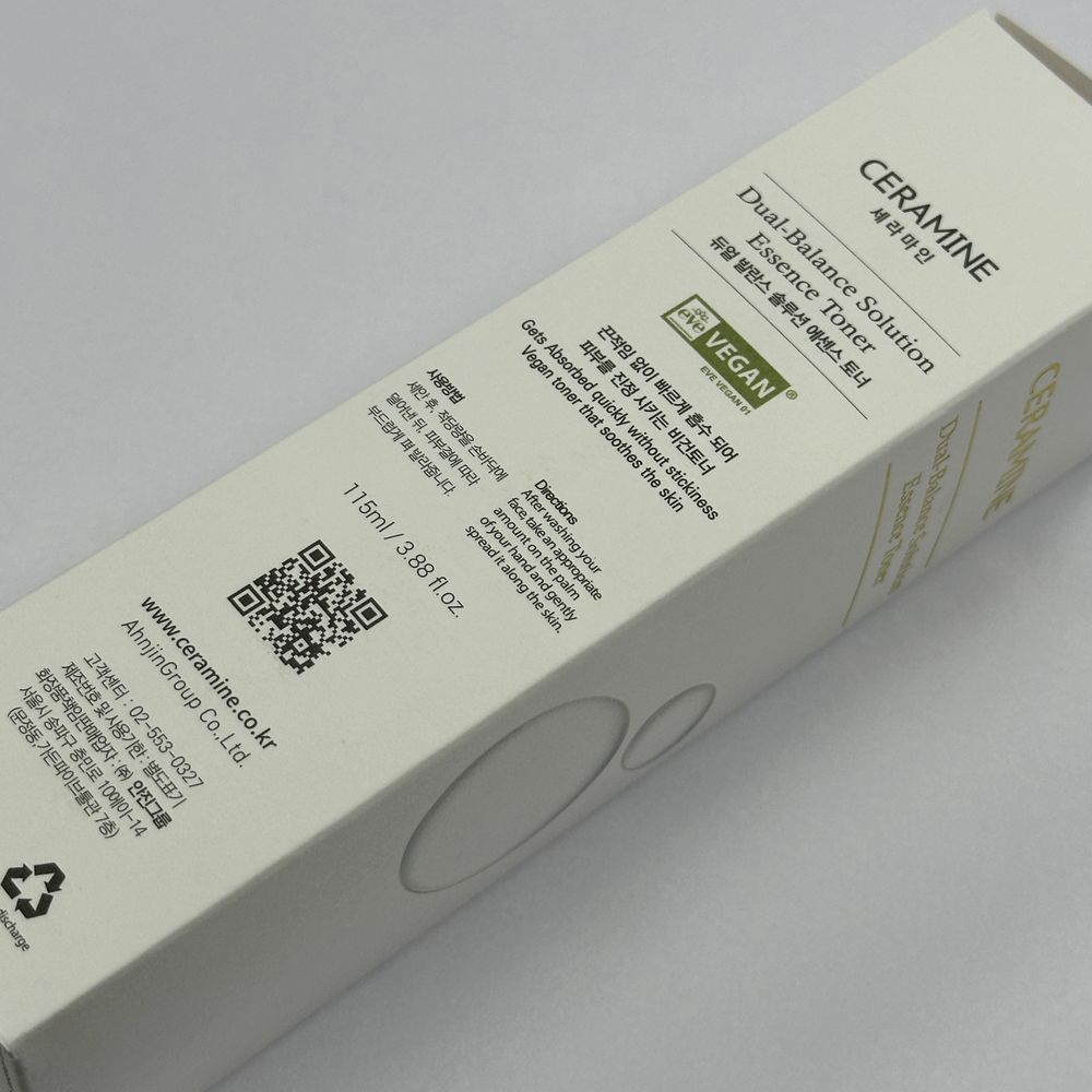 CERAMINE Dual-Balance Solution Essence Toner сертифицирован французским EVE VEGAN®, подтверждающим