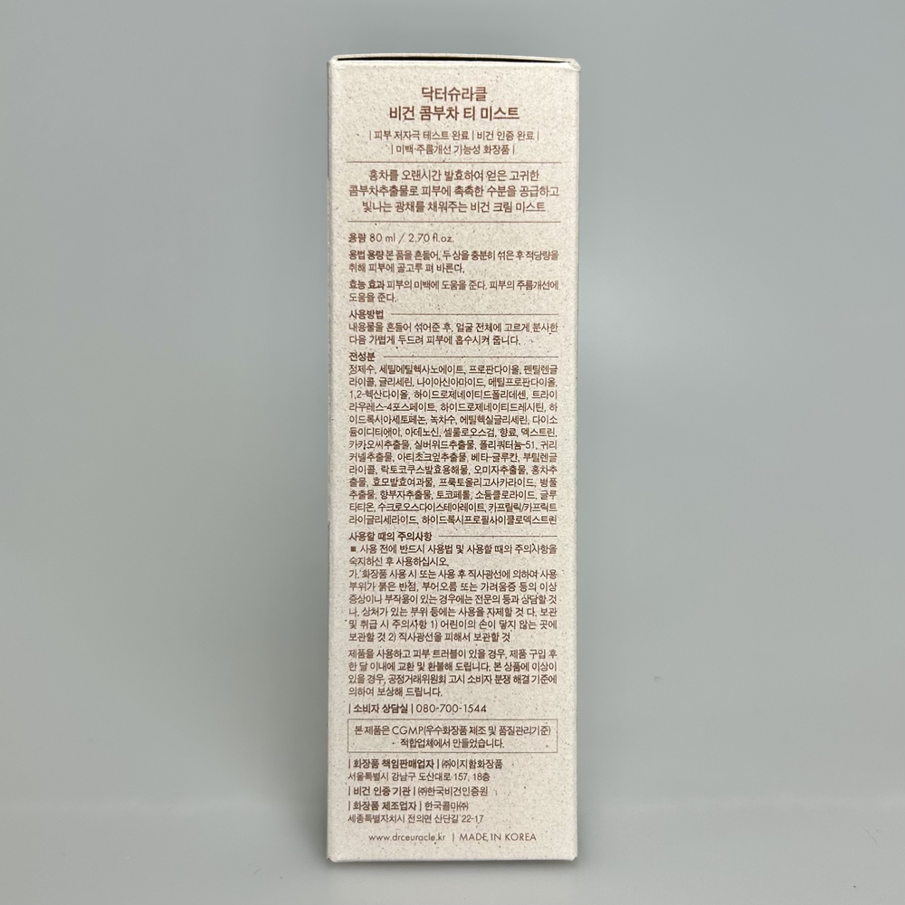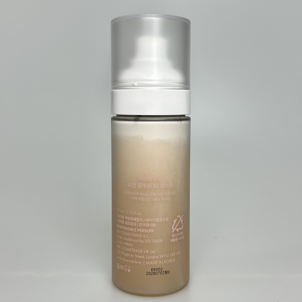 Веганский мист-спрей, который обеспечивает интенсивное увлажнение и помогает восстановить гидролипидный баланс. Двойная формула имеет сбалансированное соотношение масла и воды, которое дарит сияние и глубокое увлажнение. Распылитель нового поколения создаёт ультралёгкий, микродисперсный туман, обеспечивающий равномерное покрытие без комков. Текстура двухслойной эссенции с кремовой фазой, которая после взбалтывания распыляется сверхлегким туманом, обеспечивая сияние и глубокое увлажнение без тяжести. DR CEURACLE Vegan Kombucha Tea Mist содержит экстракт чая комбуча, богатый пробиотиками для детоксикации и укрепления иммунитета кожи. Дополнительно обогащён ниацинамидом и глутатионом для осветления и наполнения кожи энергией. Подходит для чувствительной кожи, является веганским и дерматологически протестированным средством. Средство улучшает цвет лица, делая кожу ровной, увлажнённой, шелковистой и сияющей - без особых усилий. Продукт имеет сертификат Korea Agency of Vegan Certification and Services Inc. Экологичная упаковка выполнена из переработанных пищевых материалов, имеет маркировку FSC, а для печати использованы соевые чернила.