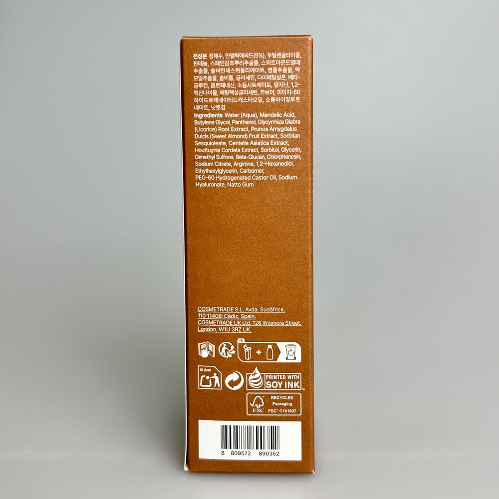 | Состав | Water, Mandelic Acid, Butylene Glycol, Beta-Glucan, Panthenol, Glycyrrhiza Glabra (Licorice) Root Extract, Prunus Amygdalus Dulcis (Sweet Almond) Fruit Extract, Sodium Hyaluronate, Sorbitan Sesquioleate, Centella Asiatica Extract, Houttuynia Cordata Extract, Sorbitol, Dimethyl Sulfone, Chlorphenesin, Sodium Citrate, Arginine, PEG-60 Hydrogenated Castor Oil, Ethylhexylglycerin, Natto Gum, Carbomer Указанный состав является ознакомительным и может быть не точнымо по разным причинам (изменение состава производителем, ошибки при наполнении сайта и прочее). Точный состав смотрите на этикетке или упаковке средства. |