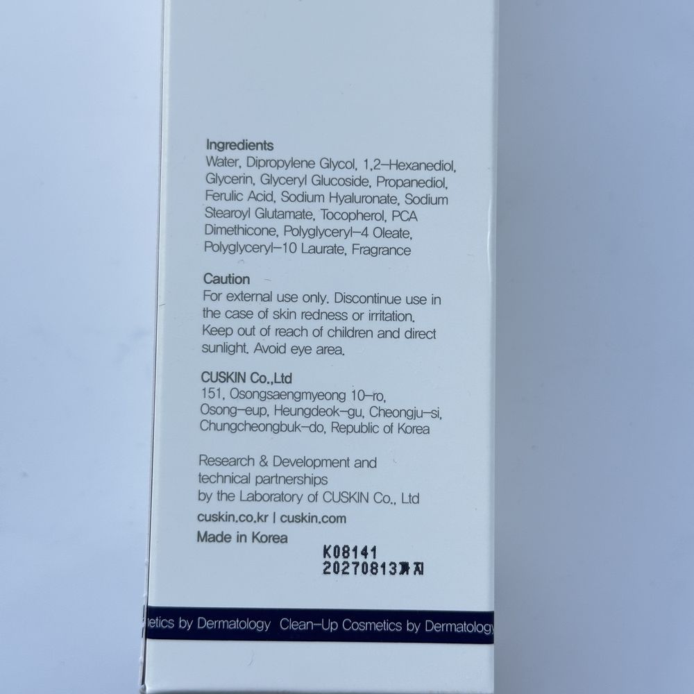 | Состав | Water, Dipropylene Glycol, 1,2-Hexanediol, Glycerin, Glyceryl Glucoside, Propanediol, Ferulic Acid, Sodium Hyaluronate, Sodium Stearoyl Glutamate, Tocopherol, PCA Dimethicone, Polyglyceryl-4 Oleate, Polyglyceryl-10 Laurate, Fragrance Указанный состав является ознакомительным и может быть не точнымо по разным причинам (изменение состава производителем, ошибки при наполнении сайта и прочее). Точный состав смотрите на этикетке или упаковке средства. |
