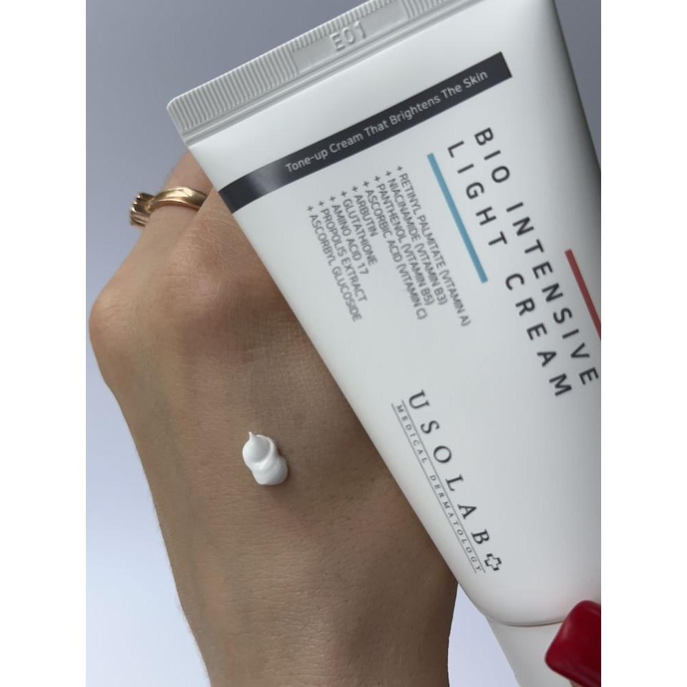 Увлажняющий омолаживающий крем с мощной осветляющей формулой. Интенсивное безопасное осветление кожи происходит в результате синергетического действия функционального отбеливающего состава. Дополнительно средство оказывает выраженное противовоспалительное действие и подходит для проблемной кожи. USOLAB Bio Intensive Light Cream осветляет кожу, делая её ярче и увлажненной без липкости и масляной пленки. Легкая текстура позволяет наносить его в несколько слоев для достижения желаемого эффекта. Хорошо распределяется и быстро впитывается. За счет диоксида титана в составе, обеспечен эффект легкого тонирования.