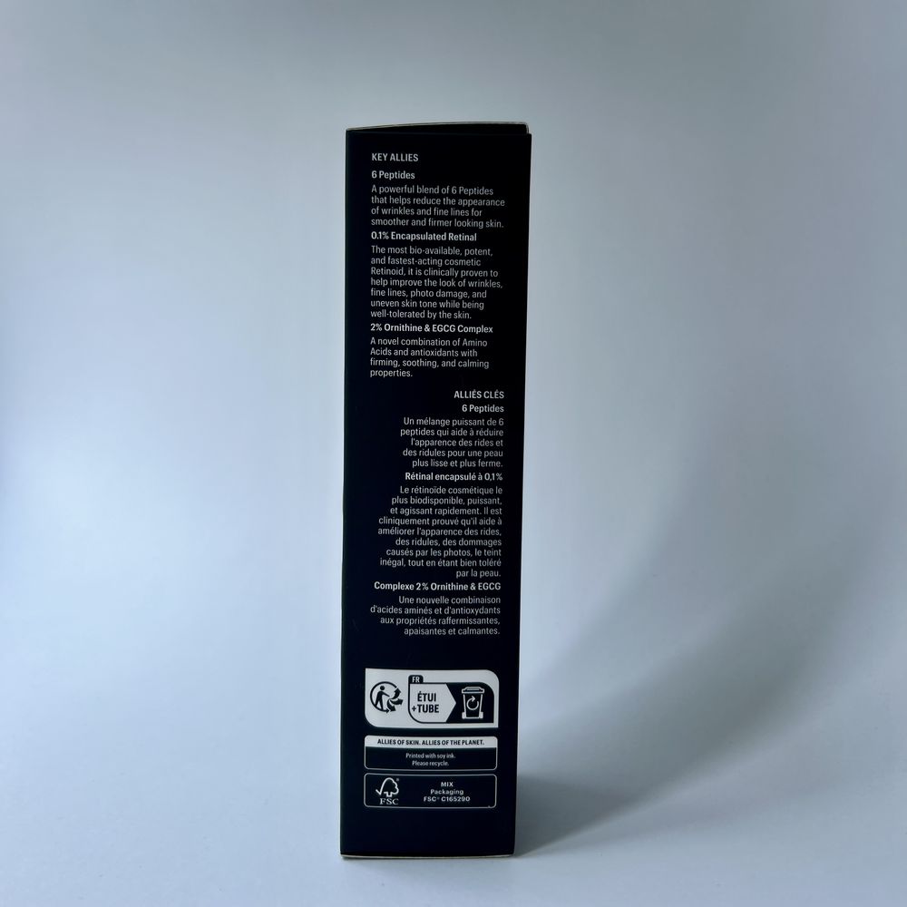 | Активные ингредиенты | Ретинол, Пептиды, Стволовые клетки растений, Глутатион, Ниацинамид |