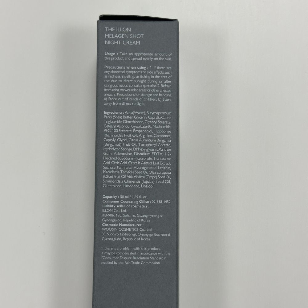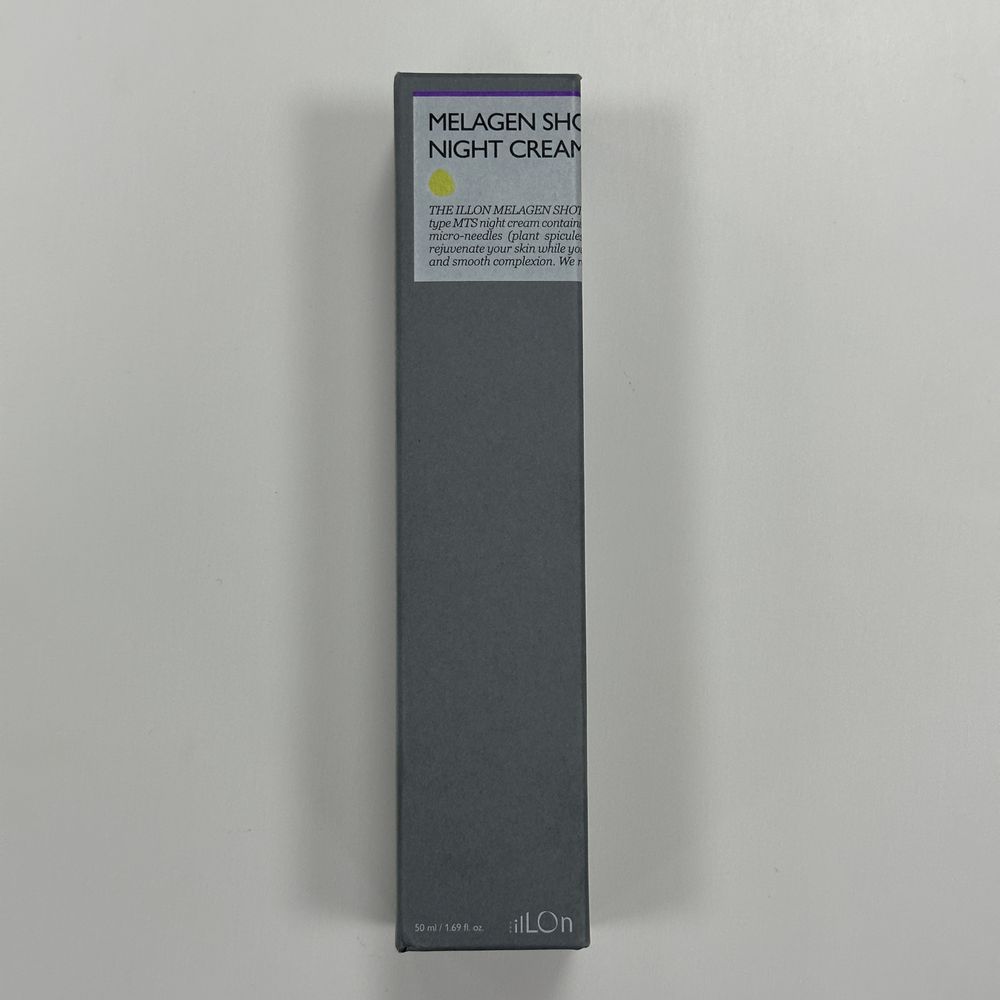 Плотный питательный крем для борьбы с пигментацией разного происхождения и степени. Рекомендуется использовать при вечернем уходе, работает по принципу MTS, а именно содержит 1,000 ppm растительных микроиголок (спикулы). Средство активирует и восстанавливает кожу во время сна, способствуя ее здоровому и гладкому виду. THE iLLON Melagen Shot Night Cream содержит транексамовую кислоту и глутатион, которые помогают уменьшить пигментные пятна, вызванные ультрафиолетом и раздражениями, осветляют общий тон кожи и минимизируют видимость морщин.