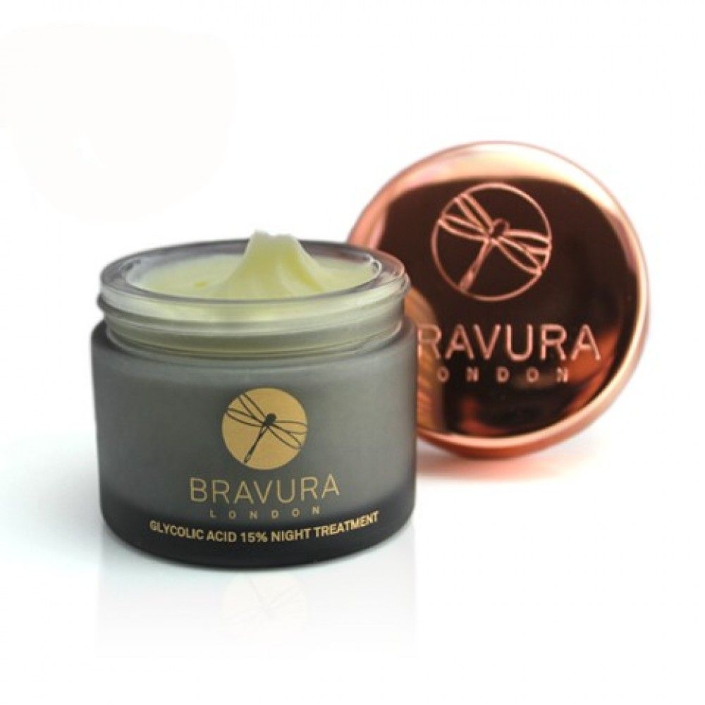 Ночной крем с эффектом мягкого пилинга, благодаря которому на утро кожа становится чистой, сияющей и здоровой. Средство осветляет пигментацию, устраняет гиперкератоз и кожа приобретает гладкий, однородный рельеф и равномерный тон. Помогает уменьшить тонкие линии и морщины, способствует сужению пор, улучшает общую текстуру и повышает тонус дермы. Стимулирует обменные процессы и повышает выработку коллагена, предотвращает проявления признаков старения. Bravura London Glycolic Acid 15% Night Treatment имеет приятную питательную текстуру, устраняет сухость и шелушения, увлажняет и питает кожу. Состав крема мощный и эффективный, видимые результаты наблюдаются после первого использования. Улучшает состояние сухой, зрелой и проблемной кожи.