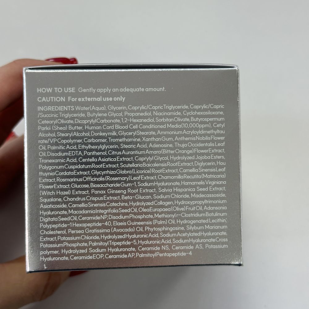 | Состав | Water, Glycerin, Caprylic/Capric Triglyceride, Caprylic/Capric/Succinic Triglyceride, Butylene Glycol, Propanediol, Cyclohexasiloxane, Cetearyl Olivate, Dicaprylyl Carbonate, Cetearyl Alcohol, 1,2-Hexanediol, Sorbitan Olivate, Butyrospermum Parkii (Shea) Butter, Stem Cell Culture Conditioned Media, Donkey Milk, Glyceryl Stearate, Ammonium Acryloyldimethyltaurate/VP Copolymer, Carbomer, Tromethamine, Camellia Sinensis Leaf Extract, Xanthan Gum, Palmitic Acid, Ethylhexylglycerin, Stearic Acid, Prunus Amygdalus Amara (Bitter Almond) Kernel Oil, Glycyrrhiza Glabra (Licorice) Root Extract, Agrimonia Eupatoria Extract, Disodium EDTA, Hydrogenated Lecithin, Pyrus Malus (Apple) Leaf Extract, Centella Asiatica Extract, Dipotassium Glycyrrhizate, Perilla Frutescens Leaf Extract, Panthenol, Tranexamic Acid, Ficus Carica (Fig) Fruit Extract, Houttuynia Cordata Extract, Salvia Hispanica Seed Extract, Vanilla Planifolia Fruit Extract, Jasminum Officinale (Jasmine) Flower Extract, Hydrolyzed Jojoba Esters, Ceramide NP, Soy Isoflavones, Pueraria Lobata Root Extract, Pueraria Mirifica Root Extract, Polygonum Cuspidatum Root Extract, Biosaccharide Gum-1, Soluble Collagen, Cimicifuga Dahurica Root Extract, Angelica Polymorpha Sinensis Root Extract, Trifolium Pratense (Clover) Leaf Extract, Punica Granatum Extract, Sodium Hyaluronate, Hydrolyzed Pea Protein, Beta-Glucan, Sodium Chloride, Phytosterols, Lecithin, Squalane, Olea Europaea (Olive) Fruit Oil, Natto Gum, Methionyl r-Clostridium Botulinum Polypeptide-1 Hexapeptide-40, Disodium Phosphate, Potassium Chloride, Potassium Phosphate, sh-Oligopeptide-1, Polysorbate 20 Указанный состав является ознакомительным и может быть не точнымо по разным причинам (изменение состава производителем, ошибки при наполнении сайта и прочее). Точный состав смотрите на этикетке или упаковке средства. |