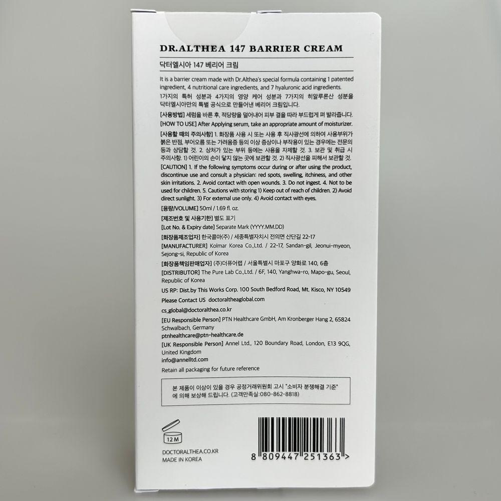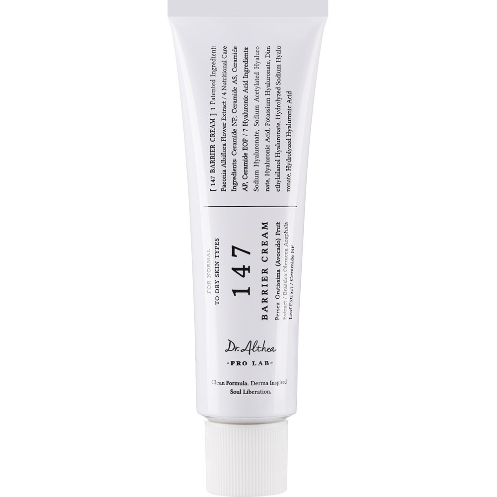 Крем для укрепления защитного барьера, питания кожи и глубокого увлажнения. Подходит для ежедневного ухода за чувствительной, обезвоженной или раздражённой кожей, нуждающейся в восстановлении, увлажнении и успокоении. Особая формула и уникальный состав глубоко увлажняют, укрепляют кожный барьер и дарят ощущение комфорта с первого применения. Многослойная структура крема обеспечивает всесторонний и длительный уход, удовлетворяя разнообразные потребности кожи — поддерживает увлажнение и питание. DR ALTHEA Pro Lab 147 Barrier Cream содержит гуайазулен с противовоспалительными свойствами, который не только успокаивает раздражения, но и придаёт средству фирменный голубой оттенок. Лёгкая, освежающая текстура быстро впитывается, поддерживает увлажнение и питание, не оставляя липкости или жирного блеска.