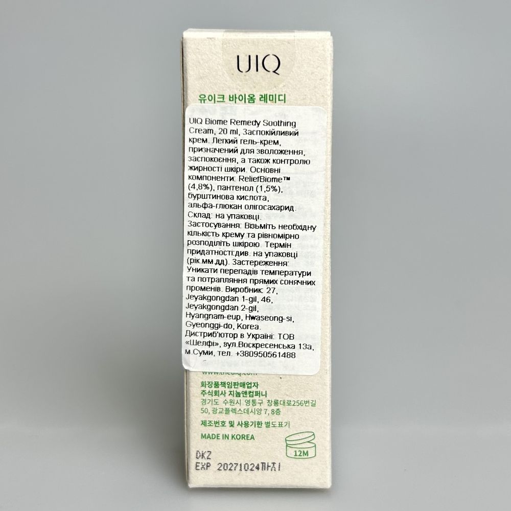 Успокаивающий крем для восстановления микробиома кожи UIQ Biome Remedy Soothing Cream - 20 мл