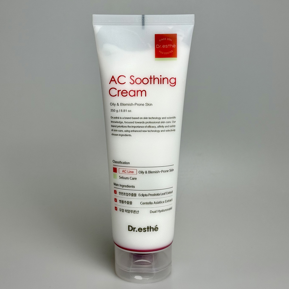 Увлажняющий, успокаивающий крем для жирной, комбинированной и проблемной кожи, который сочетает лёгкую текстуру, восстановление барьера и снятие раздражений. Формула с центеллой, керамидами и скваланом помогает уменьшить покраснения, поддерживает комфорт и обеспечивает увлажнение без жирного блеска. Лёгкая барьерно-восстанавливающая система DR ESTHE AC Soothing Cream с успокаивающими и балансирующими активами создана специально для потребностей жирной и проблемной кожи. Крем сочетает невесомую силиконовую текстуру с увлажняюще-успокаивающими и восстанавливающими компонентами, обеспечивая ежедневный комфорт без ощущения тяжести. Не тяжёлый, некомедогенный, комфортный для ежедневного использования.