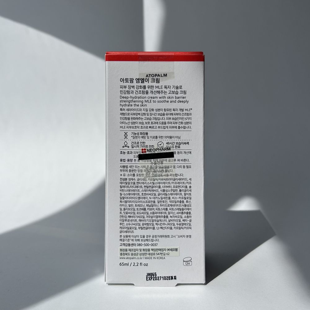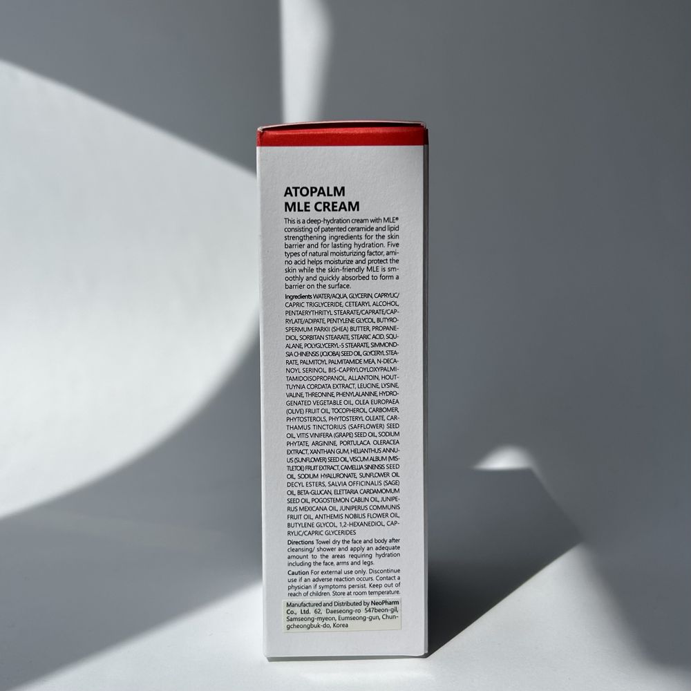 Крем с многослойной эмульсией от ведущего бренда Atopalm корейской фармацевтической компании NeoPharm. Крем произведен по уникальной технологии MLE (Multi Lamellar Emulsion) на основе запатентованного комплекса керамидов, жирных кислот, холестероле и других увлажняющих активов. Суть технологии MLE в многослойности эмульсии, которая равномерно распределяется по поверхности рогового слоя, и мгновенно восстанавливает естественную барьерную и защитную функцию кожи. Дополнительным преимуществом данной технологии является длительный увлажняющий эффект до 72 часов. Atopalm Mle Cream улучшает состояние чрезвычайно сухой, чувствительной, проблемной, а также детской кожи. Помогает уменьшить дискомфорт при атопии, дерматитах разной этиологии (солнечный, контактный), псориазе, экземе и других дерматологических заболеваниях. После нанесения средства исчезает ощущения стянутости, сухости, шелушения и воспаления кожи. Отлично впитывается, не оставляет после себя блеска и липкости. В составе отсутствуют спирт, искусственные красители и ароматизаторы, некомедогенен. При регулярном использовании средств Atopalm возможно укрепить естественный барьер кожи, который отвечает за удержание влаги и способен защитить от внешних раздражителей.