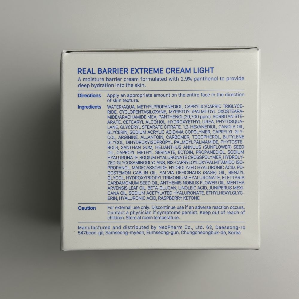 Крем Real Barrier содержит запатентованную формулу керамида Оmega-Ceramide-16, которая оказывает мощное увлажняющее действие. Также крем содержит мощную комбинацию активных компонентов, которые помогают восстановить утраченные кожей природные липиды, помогая поддерживать защитный барьер кожи. Крем содержит высокую концентрацию пантенола (29,700 ppm), он притягивает и удерживает влагу в коже, улучшая ее гидратацию, способствует регенерации поврежденных клеток. Realbarrier EXTREME CREAM хорошо использовать после агрессивных процедур (кислоты, ретиноиды), он обеспечивает комфортное чувство, устраняя сухость, шелушение и покраснение. Средство быстро впитывается, подходит для нормальной, сухой и чувствительной кожи. Не содержит парабены, минеральные масла и ароматизаторы.