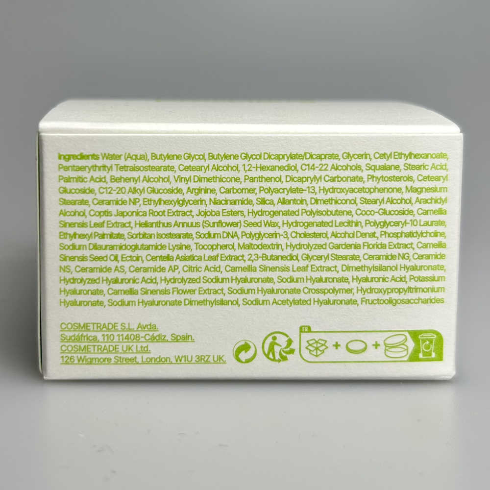 - Green Tea PDRN (0,001%) — растительный источник полинуклеотидов, которые стимулируют регенерацию клеток, ускоряют восстановление кожи после раздражений и повышают её упругость. Обладает антиоксидантным действием благодаря полифенолам зелёного чая.