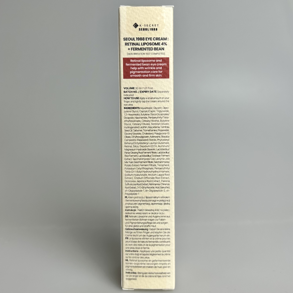 Антивозрастной крем для кожи вокруг глаз с ретиналем K-SECRET SEOUL 1988 Eye Cream: Retinal Liposome 4% + Fermented Bean - 30 мл