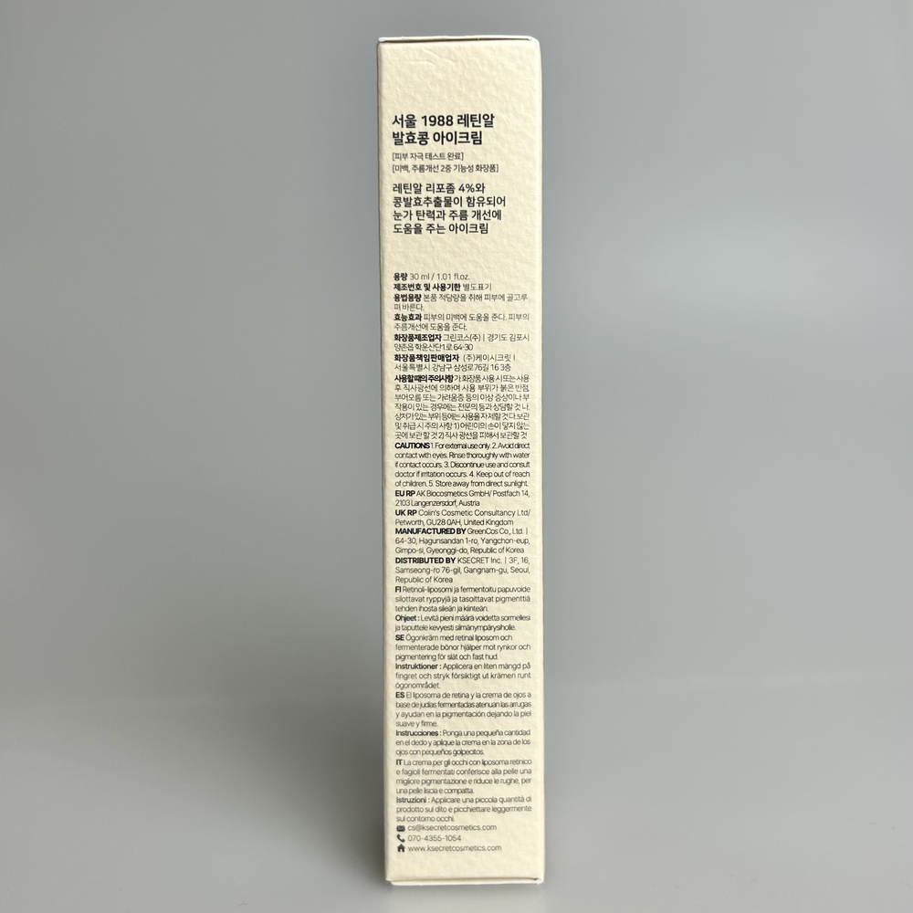 Основные эффекты K-Secret SE0UL 1988 Eye Cream RETINAL LIPOSOME 4% + FERMENTED BEAN: