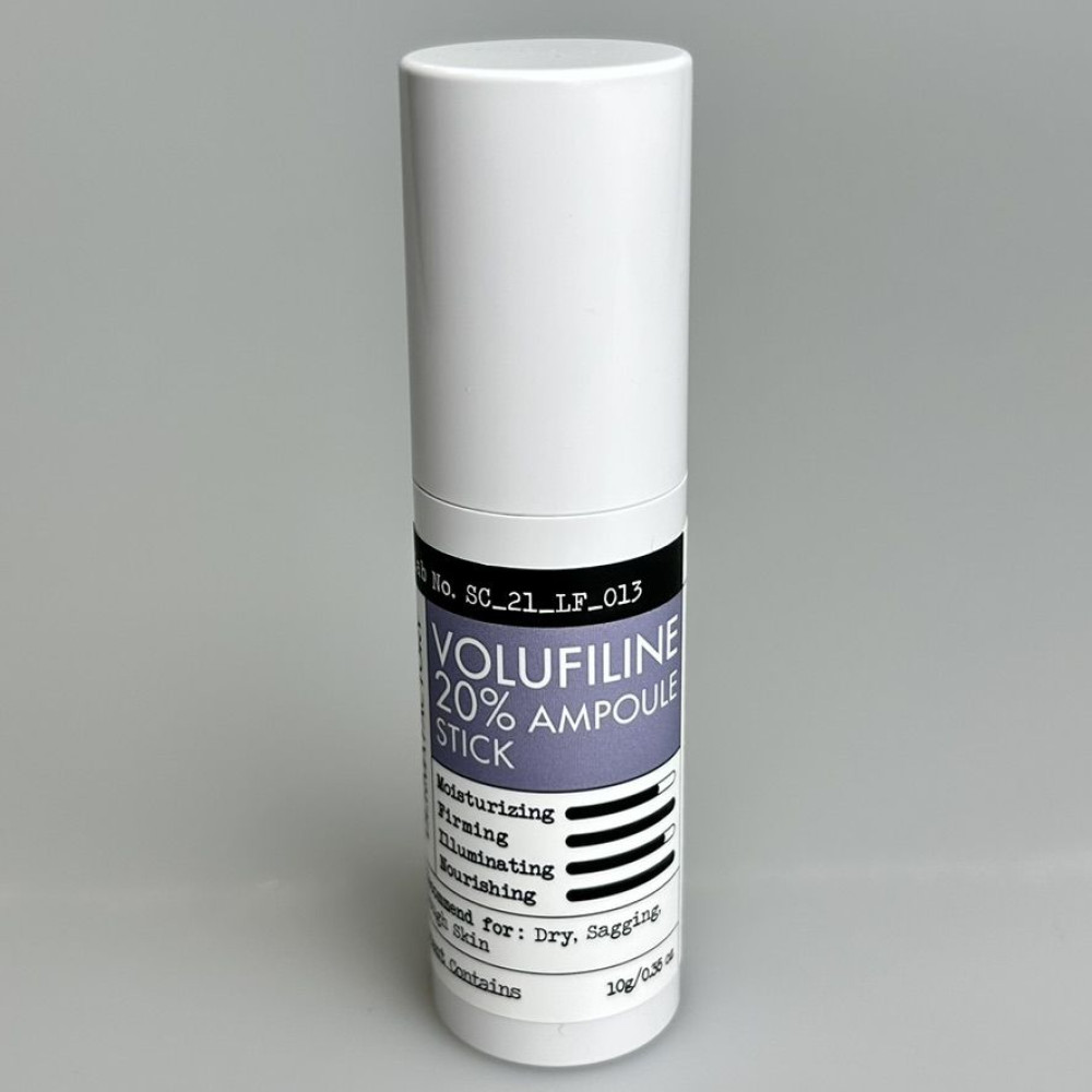 Стик-сыворотка с лифтинг-эффектом предназначен для ухода за кожей, склонной к потере тонуса и образованию мелких морщин. Особенно рекомендуется для тонкой и обезвоженной кожи, для восстановления объема и упругости. Ампульный стик активно борется с морщинами и интенсивно питает кожу. Содержание в 20% волюфилина, ингредиента, известного своими свойствами улучшения эластичности кожи, придает лицу сияние и упругость. Этот стик не только восстанавливает объем кожи, но и делает её более гладкой, упругой и сияющей. Обогащая кожу влагой, средство обеспечивает длительное увлажнение, устраняет сухость и шелушение, стимулирует процессы восстановления и повышает эластичность и тургор кожи. Также средство способствует разглаживанию морщин, выравниванию тона и текстуры кожи, а также устранению признаков преждевременного старения. Антиоксидантное действие сыворотки освежает и смягчает кожу, делая её более сияющей и гладкой. DERMA FACTORY Volufilline 20% Ampoule Stick имеет приятную тающую текстуру бальзама, быстро впитывается и оставляет роскошный сияющий финиш, кожа в результате выглядит ухоженной и молодой.