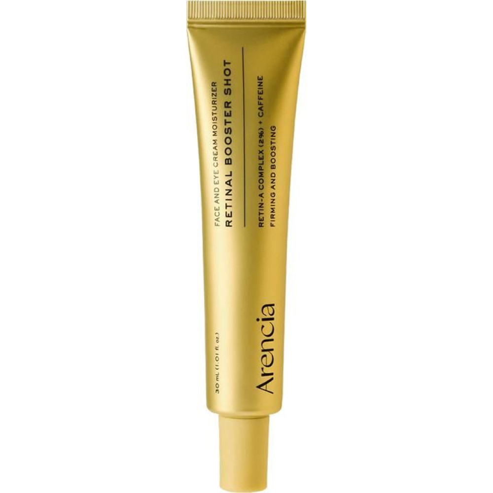 Высокоэффективная сыворотка-бустер с ретиналем (0,02%/200 ppm) для интенсивного ухода и восстановления молодости кожи. Формула с Retin-A Complex, кофеином и пептидами помогает повысить эластичность кожи и сузить поры, уменьшить видимость тонких линий и морщин, а также оживить уставшую кожу. Состав средства также обогащён успокаивающими компонентами, такими как экстракт центеллы азиатской, керамиды и эктоин, которые снижают вероятность раздражения от ретиналя. Комплекс Retin-A Complex работает на основе LDH-наноинкапсуляции и multi-$ технологии, обеспечивая глубокое проникновение активных компонентов и видимый результат без раздражения. Лёгкая кремово-гелевая текстура быстро впитывается, не создавая ощущения тяжести или «парникового» эффекта. Результатом использования ARENCIA Retinal Booster Shot является гладкая, подтянутая и ухоженная кожа.