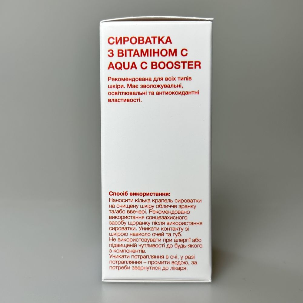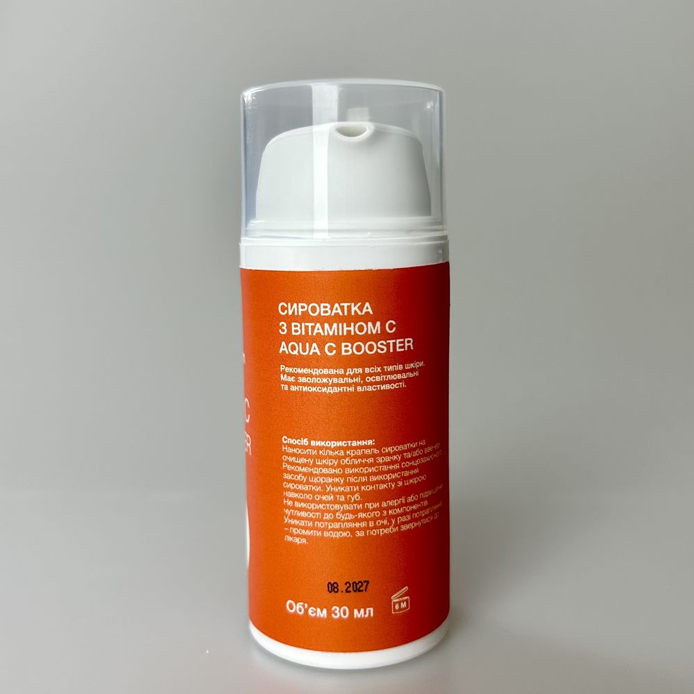 Осветляющее средство с 10% жирорастворимого витамина С с высокой стабильностью. Обеспечивает трансформационные результаты: яркая, упругая кожа с ровным тоном. В составе ABOUT SKIN Aqua C Booster содержится липофильная форма витамина С (THD Ascorbate), которая легко проникает через липидный барьер кожи, отличается высокой стабильностью и деликатностью для чувствительной кожи. Триада активов С + Е + феруловая кислота, работающая синергично, усиливая действие друг друга, обеспечивает мощную антиоксидантную защиту, стимуляцию коллагена и осветление пигментации. Glyceryl Glucoside — активатор аквапоринов (AQP3), со способностью связывать и удерживать влагу, усиливает внутриклеточный водный транспорт для комфортного длительного увлажнения. Сыворотка быстро впитывается, не оставляет липкости и возвращает коже сияние и свежесть.