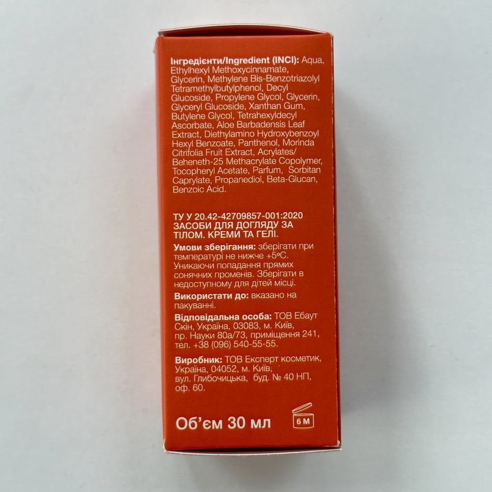 | Активные ингредиенты | Химические фильтры, Глицерил глюкозид, Витамин С, Экстракт нони, Бета-глюкан |