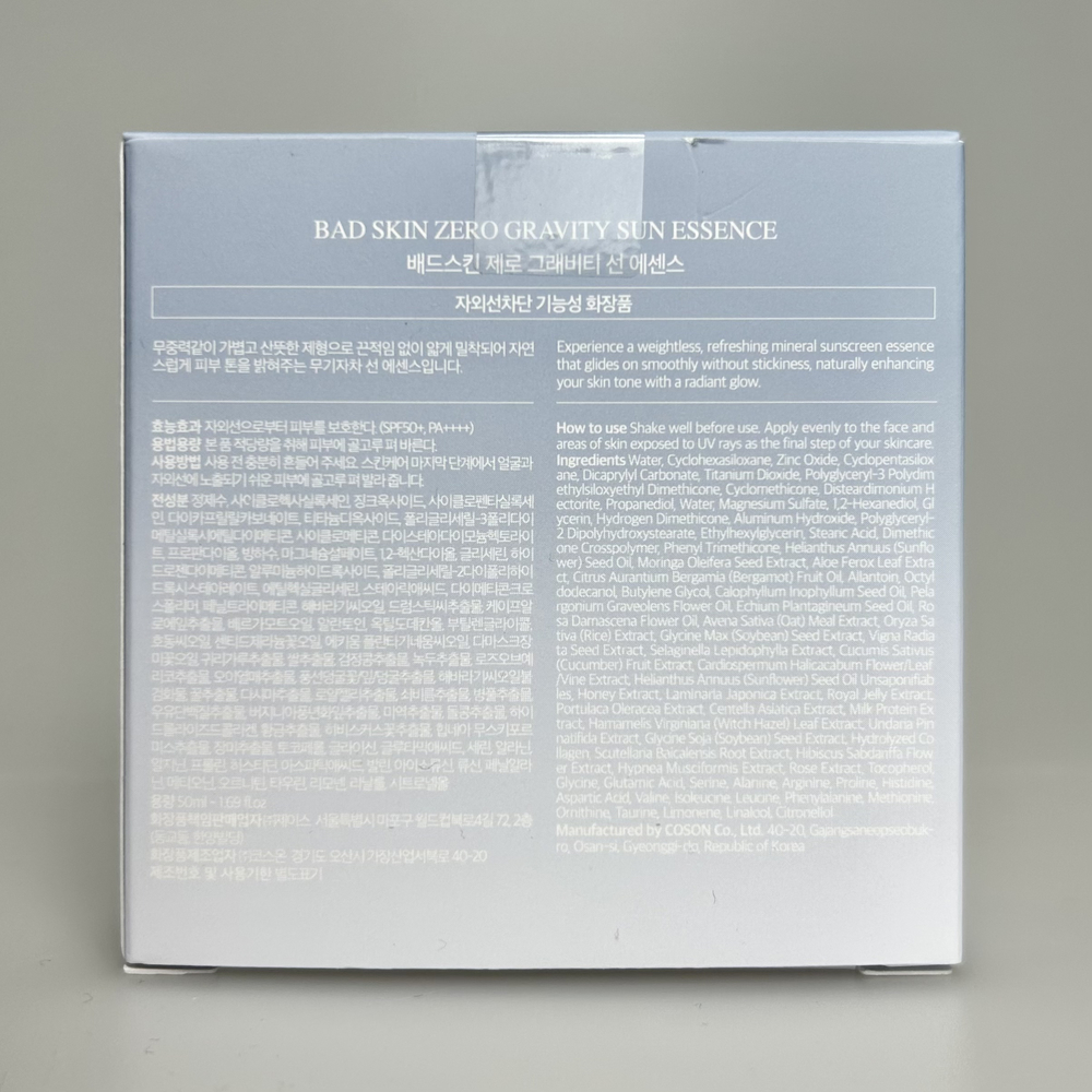 Лёгкая минеральная солнцезащитная эссенция BAD SKIN Zero Gravity Sun Essence - 50 мл