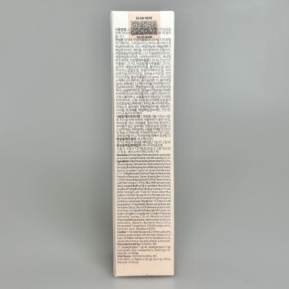 | Активные ингредиенты | Химические фильтры, Ниацинамид, Экстракт корня женьшеня |