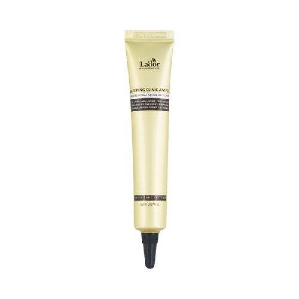 Оздоравливает и улучшает внешний вид ослабленных, сухих, тусклых, ломких волос. Заполняет пустоты поврежденных участков белками, схожими по строению и составу с белком волос - кератином. Корейская несмываемая маска очень быстро проникает внутрь волосяного стержня и процесс воздействия ускоряется. La"dor Sleeping Clinic Ampoule поможет с первого использования избавится от сухости, ломкости, улучшить состояние секущихся кончиков и придаст волосам жизненную силу, здоровый, свежий вид. Уже на утро можно получить живые, упругие локоны, с ярким блеском и насыщенным цветом. Средство имеет кремовую, нежирную консистенцию, легко распределяется и впитывается, не требует смывания утром, при этом на волосах не оставляет жирной и липкой пленки.