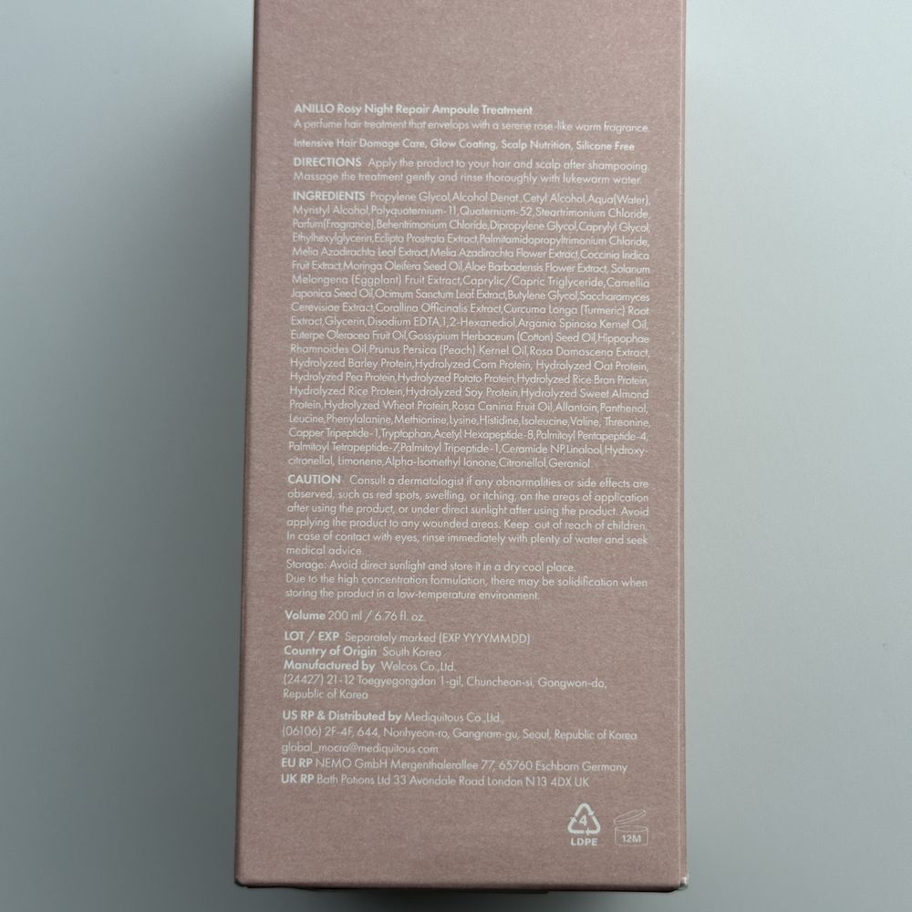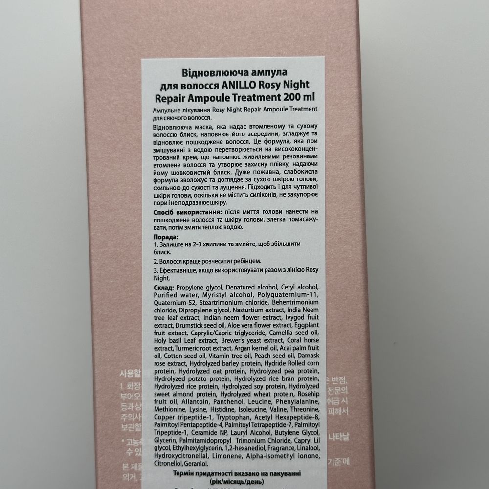 Маска для восстановления волос ANILLO Rosy Night Repair Ampoule Treatment - 200 мл