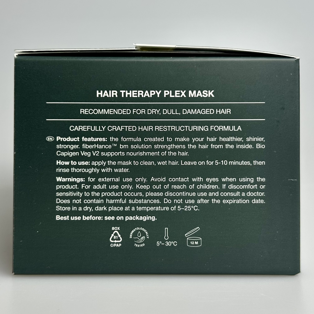 Профессиональная маска для реконструкции и восстановления повреждённых, осветлённых, окрашенных и ломких волос. Глубоко увлажняет, укрепляет и возвращает прядям упругость. Благодаря технологии bond-building маска не просто сглаживает поверхность волоса, а проникает глубоко в структуру, восстанавливает и укрепляет водородные и ионные связи в кортексе. В результате усиления структуры кератина волосы становятся более плотными, крепкими и упругими, при этом не жёсткими. Продукт насыщает волосы микроэлементами, удерживает влагу внутри и облегчает расчёсывание и стайлинг. Благодаря растительному комплексу Bio Capigen Veg V2 маска питает, защищает от повреждений, воздействия солнца, окрашивания и термостайлинга, помогает сохранить яркость и блеск. Заметный эффект уже после первого нанесения, а с каждым использованием WHO CARES Hair Therapy PLEX Mask результат накапливается.
