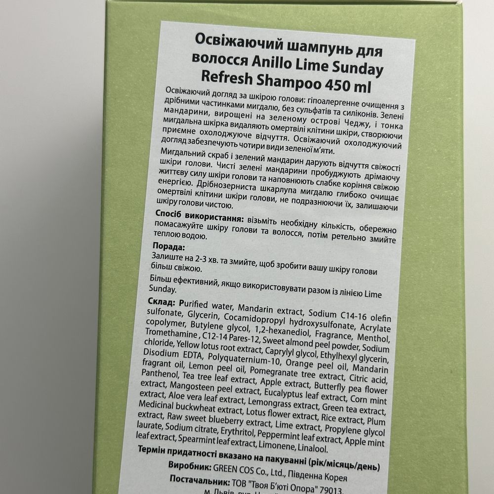 Чтобы кожа головы была ухоженной, а волосы обладали привлекательным блеском, следует обеспечить им тщательный уход. Шампунь для мытья головы должен быть с безопасным составом и приятным ароматом. Удачный вариант – ANILLO Lime Sunday Refresh Shampoo, разработанный по новейшей технологии без применения сульфатов и силиконов. Мелкие дольки скорлупы миндаля и экстракт зеленого мандарина в составе шампуня способствуют отшелушиванию отмерших клеток. После использования косметического средства на волосах остается приятное чувство свежести. К ключевым преимуществам освежающего шампуня относятся: