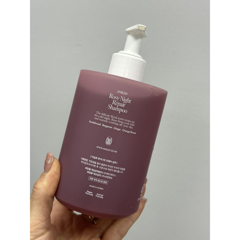 Чтобы волосы выглядели ухоженными, а кожа головы имела достаточно питания, понадобится восстановительный шампунь. Он разработан специально для сухих и ломких волос. ANILLO Rosy Night Repair Shampoo мягко очищает кожу головы, обеспечивая необходимое питание. Формула шампуня обогащена экстрактом дамасской розы, обладающим чрезвычайно приятным ароматом. Увлажняющий шампунь от бренда ANILLO универсален в использовании. Он подходит для нормальной, жирной, сухой, чувствительной, раздраженной и комбинированной кожи. Среди главных преимуществ косметического продукта: