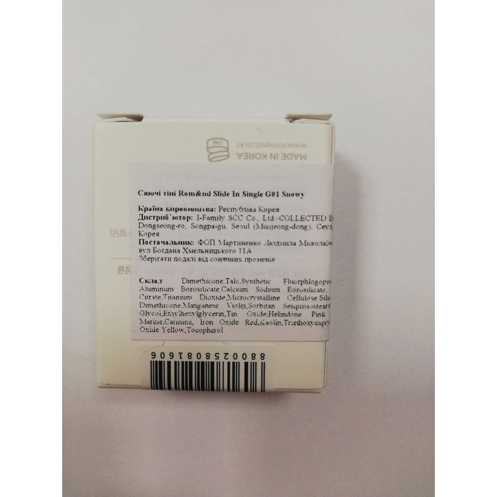 Снежные тени ROM&ND Slide In Single G01 Snowy - 1.8 г