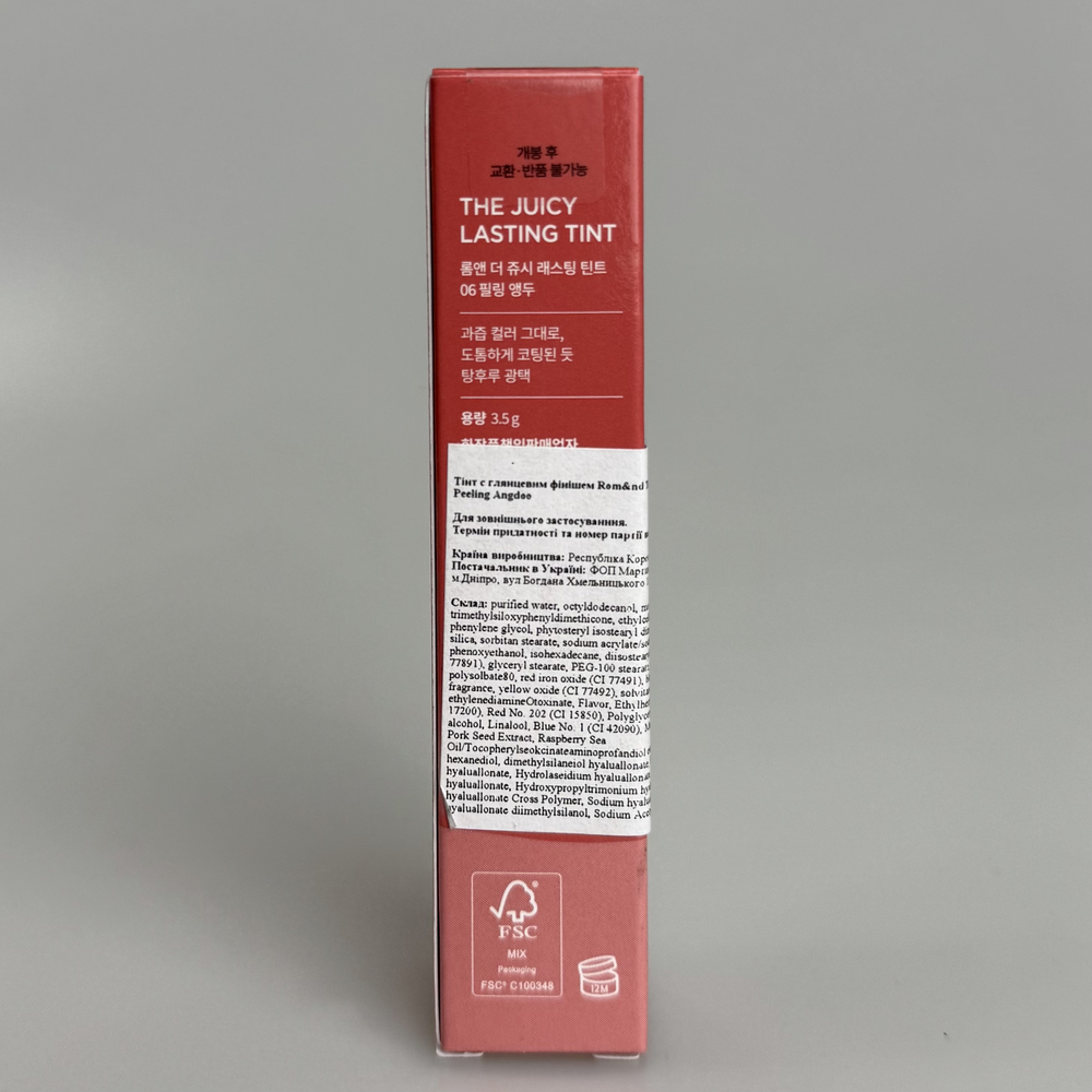 Глянцевый тинт для губ с эффектом увлажнённого объёма ROM&ND Juicy Lasting Tint Color 06 Peeling Angdoo - 3.5 г