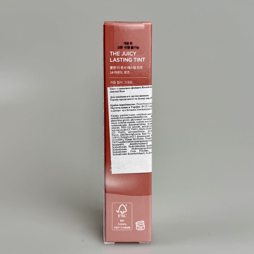 Глянцевый тинт для губ с эффектом увлажнённого объёма ROM&ND Juicy Lasting Tint Color 14 Almond Rose - 3.5 г
