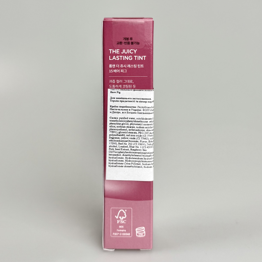 Глянцевый тинт для губ с эффектом увлажнённого объёма ROM&ND Juicy Lasting Tint Color 15 Bare Fig - 3.5 г