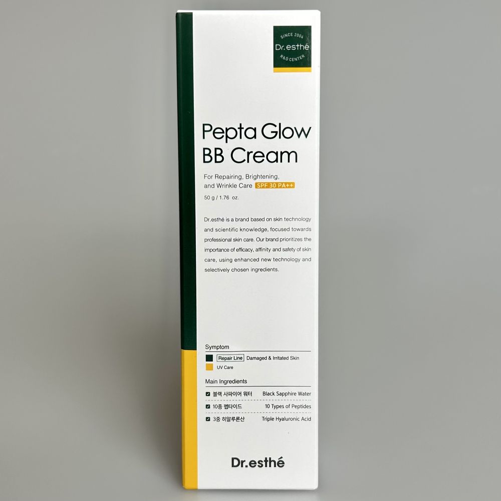 Лёгкий BB-крем с пептидами и гидролатом винограда «чёрный сапфир» обеспечивает естественно-прозрачное покрытие и защиту кожи от солнца, повреждений и раздражений. Успокаивает и восстанавливает повреждённые участки, повышает увлажнённость, выравнивает тон и предотвращает признаки старения. Dr.esthé Pepta Glow BB Cream SPF30/PA++ подходит для сухой, уставшей и чувствительной кожи с признаками раздражения или покраснения. Благодаря тонирующим пигментам и нежной кремовой текстуре маскирует визуальные недостатки без эффекта маски, создавая гладкое и ровное покрытие кожи.