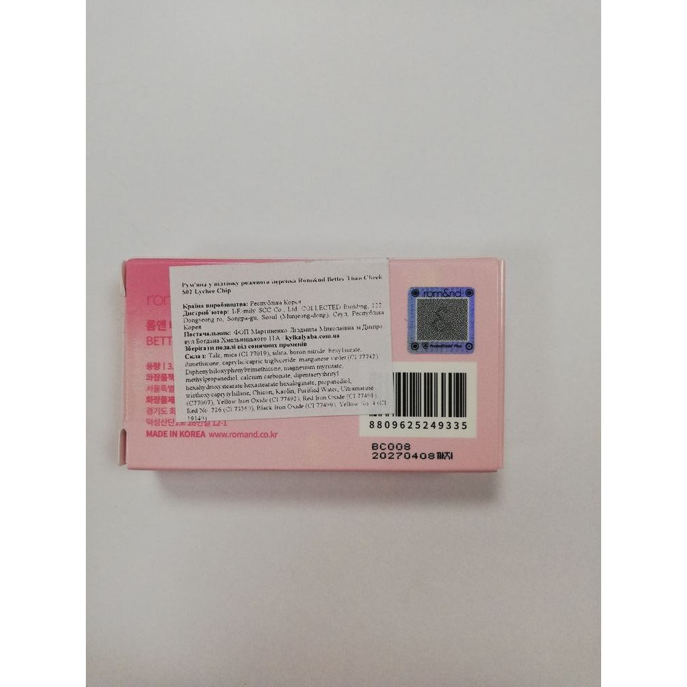 Нежные румяна ROM&ND Better Than Cheek S02 Lychee Chip - 4 г