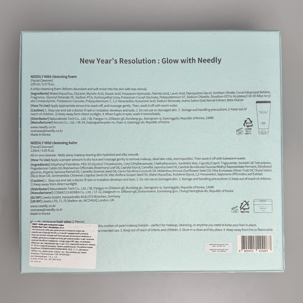 - Шпильки Needly, 2 шт. — стильные аксессуары в фирменных цветах бренда (мятный и перламутровый) для удобства во время ухода за кожей.
