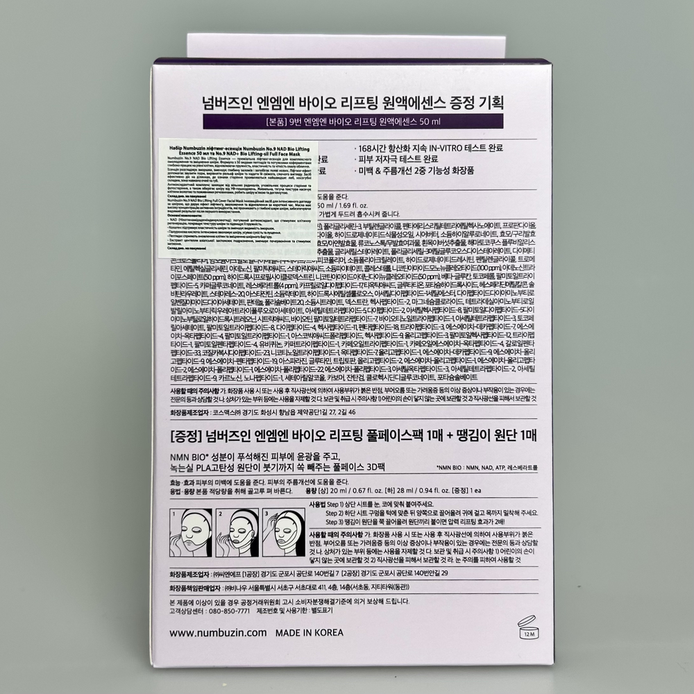 Набор для упругости кожи NUMBUZIN №9 NAD Bio Lifting Essence + NAD+ Bio Lifting-sil Full Face Mask - 1шт + 1шт