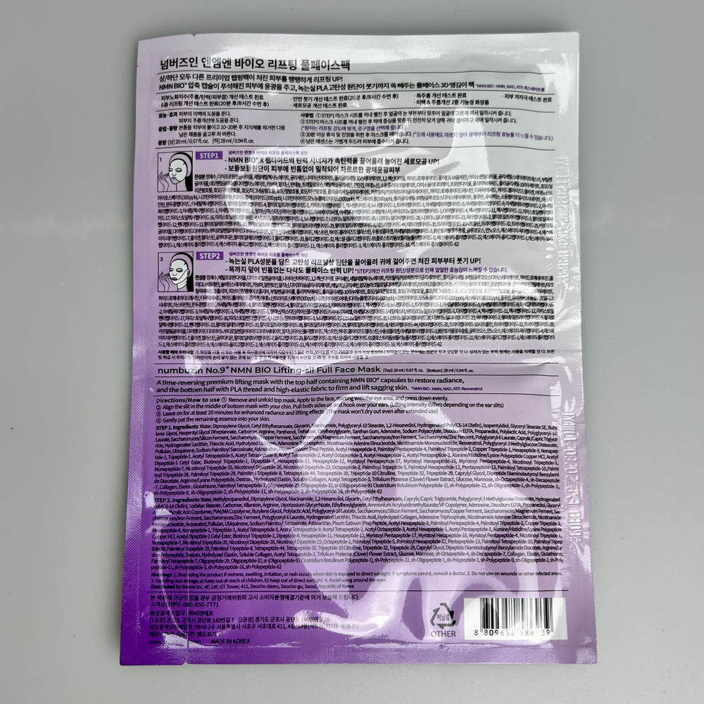 - Лифтинговая маска для лица Numbuzin No.9 NAD+ Bio Lifting-sil Full Face Mask, 1 шт