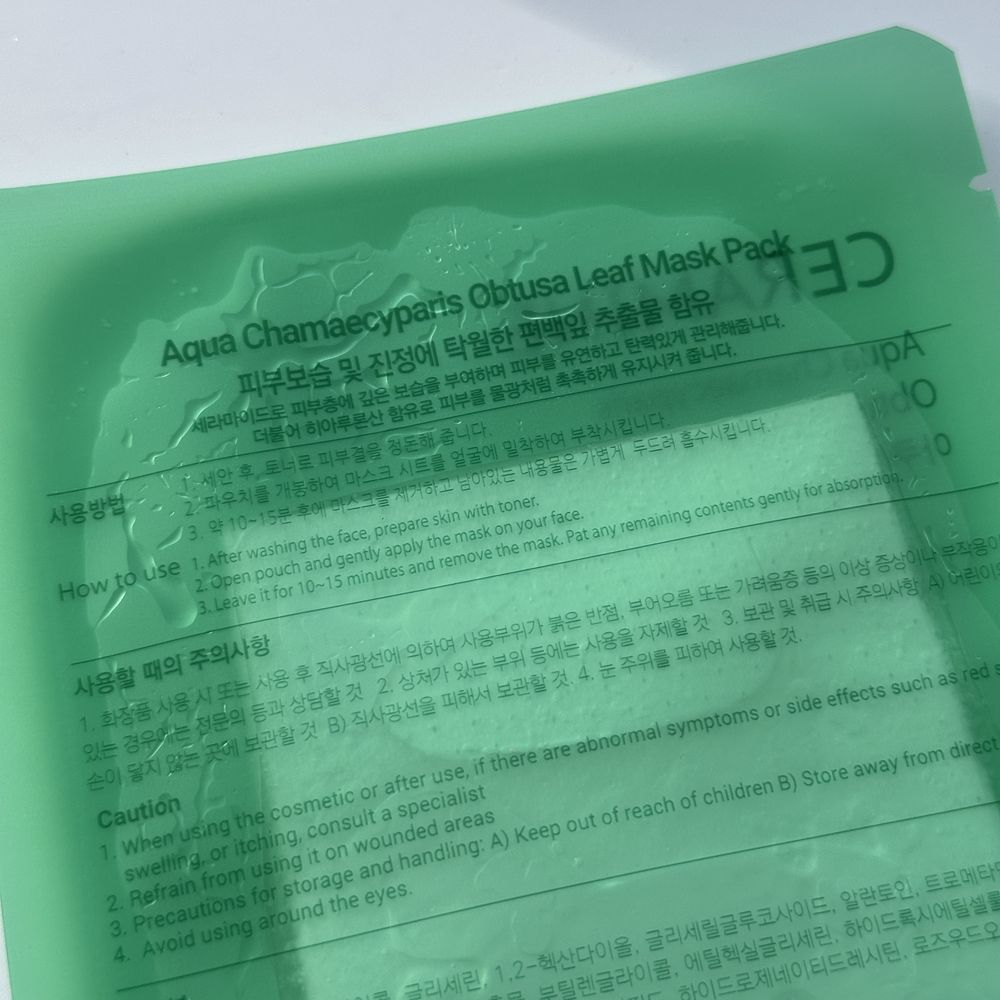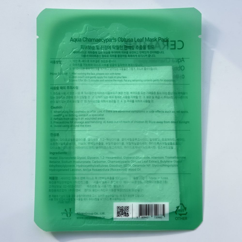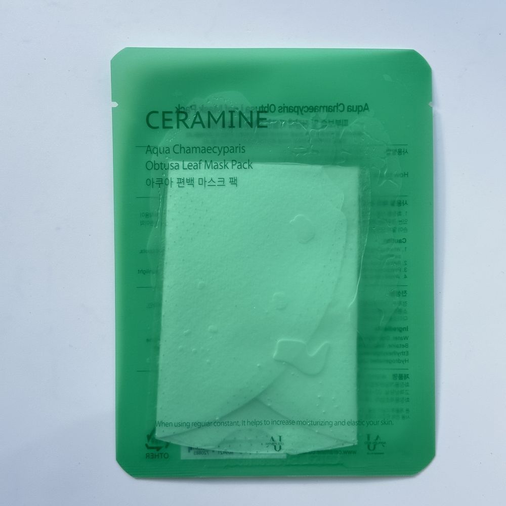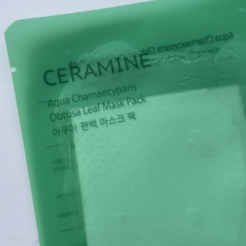 Заспокійлива, зволожувальна тканинна маска CERAMINE Aqua Chamaecyparis Obtusa Leaf Mask