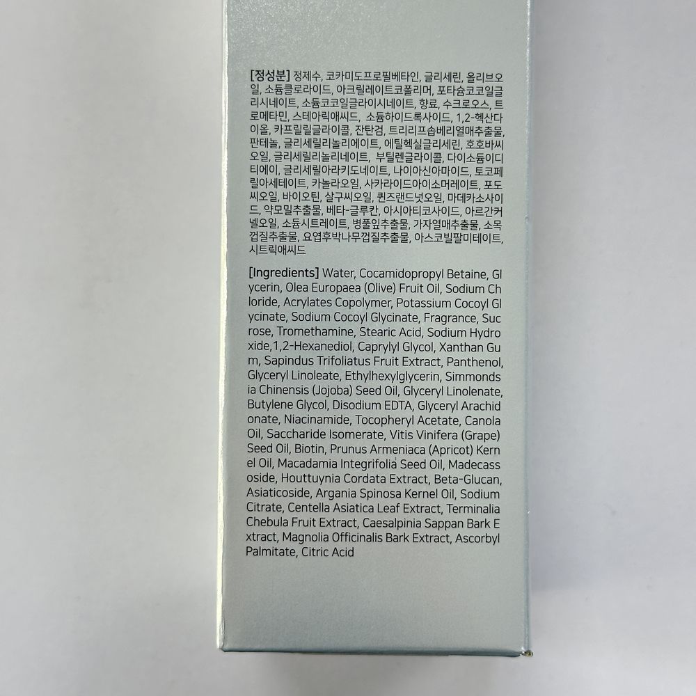 | Склад | Water, Cocamidopropyl Betaine, Glycerin, Potassium Cocoyl Glycinate, Olea Europaea (Olive) Fruit Oil(3.2%), Sodium Chloride, Acrylates Copolymer, Sodium Cocoyl Glycinate, Sodium Hydroxide, Tromethamine, Stearic Acid, Sucrose, 1,2-Hexanediol, Caprylyl Glycol, Sodium Cocoyl Apple Amino Acids, Xanthan Gum, Sapindus Trifoliatus Fruit Extract, Decyl Glucoside, Panthenol, Glyceryl Linoleate, Ethylhexylglycerin, Simmondsia Chinensis (Jojoba) Seed Oil, Glyceryl Linolenate, Disodium EDTA, Thiamine HCl, Tocopheryl Acetate, Xylitol, Honey, Niacinamide, Glyceryl Arachidonate, Canola Oil, Maltodextrin, Tetrasodium EDTA, Saccharide Isomerate, Vitis Vinifera (Grape) Seed Oil, Butylene Glycol, Biotin, Prunus Armeniaca (Apricot) Kernel Oil, Freesia Refracta Extract, Monarda Didyma Leaf Extract, Chamomilla Recutita (Matricaria) Flower Extract, Lavandula Angustifolia (Lavender) Flower Extract, Hydrolyzed Ginseng Saponins, Macadamia Integrifolia Seed Oil, Madecassoside, Houttuynia Cordata Extract, Beta-Glucan, Sodium Citrate, Asiaticoside, Citric Acid, Panax Ginseng Callus Culture Extract, Argania Spinosa Kernel Oil, Centella Asiatica Leaf Extract, Dioscorea Opposita (Wild Yam) Root Extract, Ascorbyl Palmitate, Albumen Extract, Cyanocobalamin, Phenoxyethanol, Trisodium NTA, Fragrance, Limonene Зазначений склад є ознайомчим і може бути не точним з різних причин (зміна складу виробником, помилки при наповненні сайту та інше). Точний склад дивіться на етикетці чи упаковці засобу. |