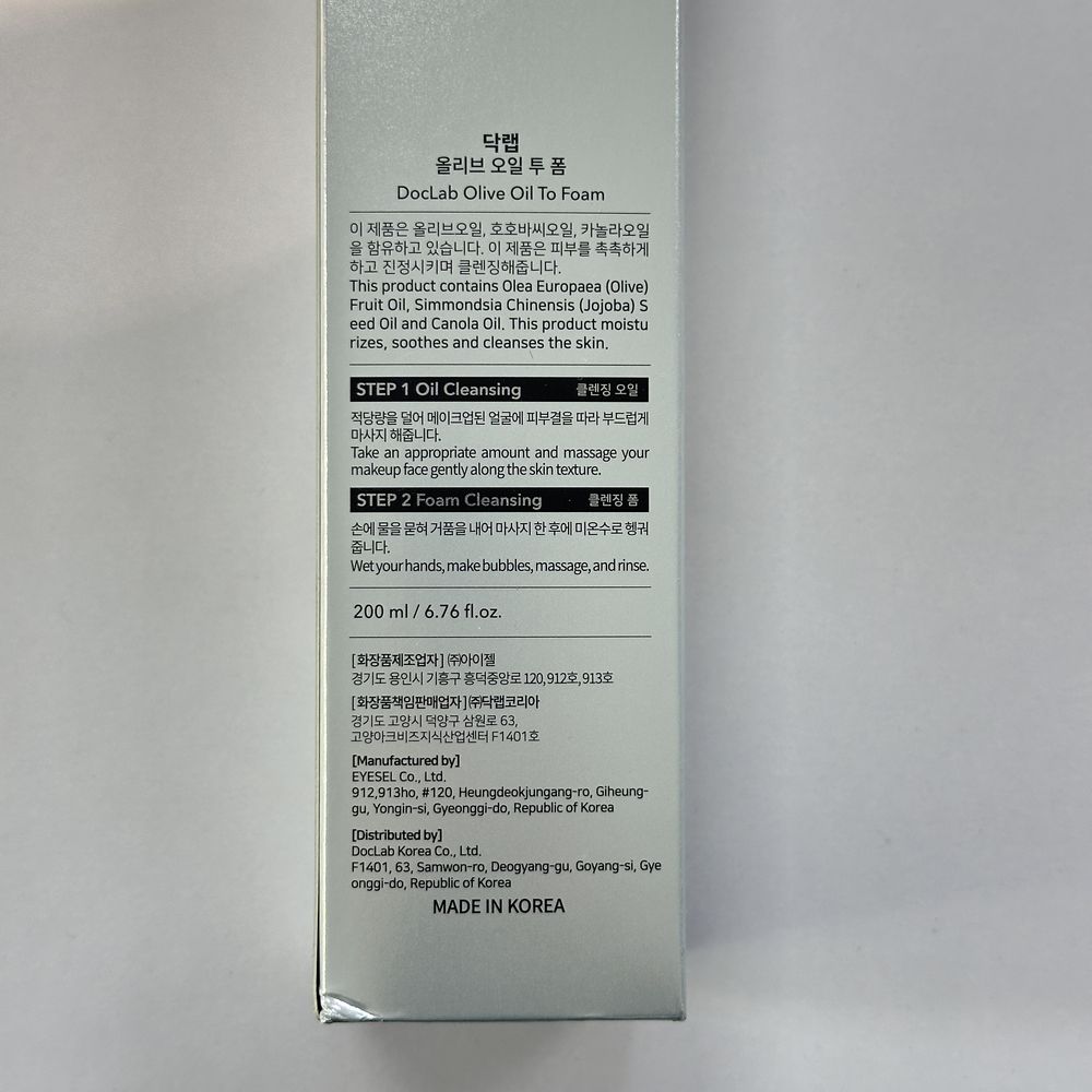 Очищуючий одноетапний засіб, який поєднує олію та пінку в одному флаконі. Функція подвійного очищення забезпечує одночасно ефективне та м'яке очищення, об'єднуючи етап демакіяжу та вмивання. DOCLAB Olive Oil To Foam ретельно видаляє макіяж та щоденні забруднення, наповнює та зволожує, надаючи шкірі чистий і свіжий вигляд без пересушування. Склад містить антиоксиданти, антивікові та інгредієнти для відновлення бар'єра шкіри. Засіб дерматологічно схвалений та сертифікований KFDA, відповідно підходить для чутливої шкіри. Регулярне використання очищувача Olive Oil-to-Foam допомагає зробити шкіру гладкішою та пори менш помітними.