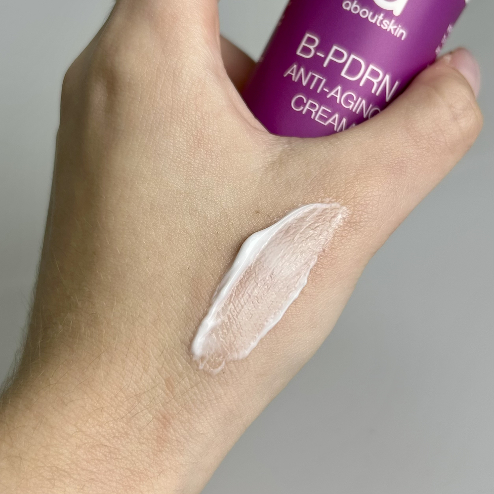 Інтенсивний зволожувальний для відновлення та омолодження шкіри. Формула засобу містить пептиди, ПДРН, бакучіол, сечовину, які забезпечують комплексний антивіковий догляд за шкірою будь-якого типу та сприяють ефекту біорепарації. Засіб глибоко ревіталізує, підсилює бар’єр, розгладжує, зменшує сухість і повертає шкірі пружність. ABOUT SKIN B-PDRN Anti-Aging Cream має м’яку, комфортно насичену текстуру, яка швидко вбирається, не залишає липкості та жирності.