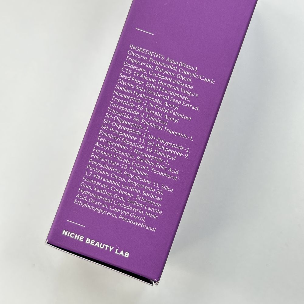 | Склад | Aqua (Water), Glycerin, Propanediol, Caprylic/Capric Triglyceride, Butylene Glycol, Dodecane, C15-19 Alkane, Hordeum Vulgare Seed Flour, Ethyl Macadamiate, Glycine Soja (Soybean) Seed Extract, Sodium Hyaluronate, Acetyl Hexapeptide-1, N-Prolyl Palmitoyl Tripeptide-56 Acetate, Acetyl Tetrapeptide-2, Palmitoyl Tripeptide-38, Palmitoyl Tripeptide-1, SH-Oligopeptide-1, SH-Oligopeptide-2, SH-Polypeptide-1, SH-Polypeptide-11, SH-Polypeptide-9, Palmitoyl Dipeptide-10, Palmitoyl Tetrapeptide-7, Nonapeptide-1, Acetyl Glutamine, Bacillus/Folic Acid Ferment Filtrate Extract, Tocopherol, Polyacrylate-13, Pullulan, Polyisobutene, Silica, Pentylene Glycol, Polysorbate 20, 1,2-Hexanediol, Lecithin, Sorbitan Isostearate, Carbomer, Sclerotium Gum, Xanthan Gum, Sodium Lactate, Hydroxypropyl Cyclodextrin, Malic Acid, Dextran, Caprylyl Glycol, Ethylhexylglycerin, Phenoxyethano Зазначений склад є ознайомчим і може бути не точним з різних причин (зміна складу виробником, помилки при наповненні сайту та інше). Точний склад дивіться на етикетці чи упаковці засобу. |
