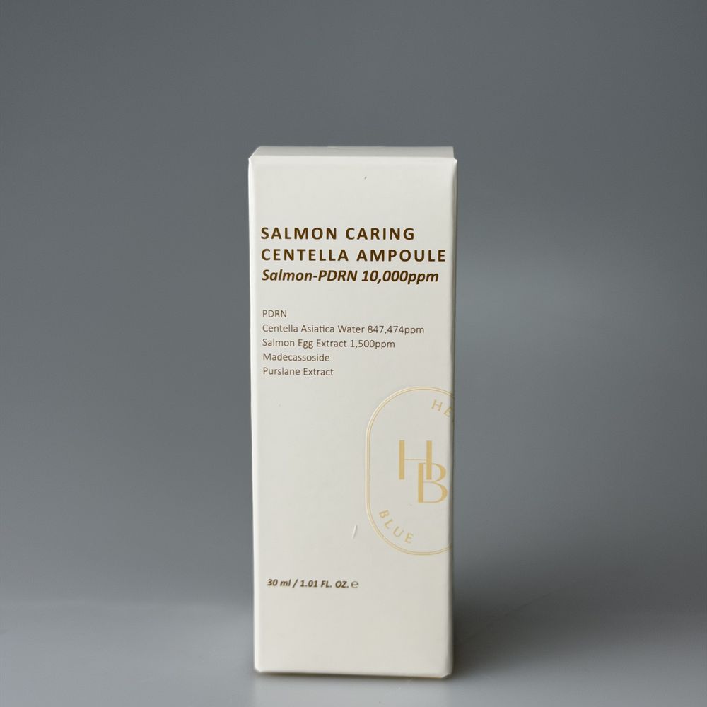 Ампула на основі гідролату центели для глибокого зволоження, відновлення та покращення текстури. Допомагає зменшити запальні прояви, заспокоює подразнену шкіру та забезпечує відчуття комфорту. Активна формула з екстрактом ікри лосося забезпечує антиоксидантний захист, сповільнюючи передчасне старіння, а PDRN стимулює регенерацію, вирівнює рельєф і підвищує еластичність шкіри. Додатково гіалуронова кислота у поєднанні з бетаїном інтенсивно зволожує шкіру та підтримує її водний баланс. HEVEBLUE Salmon Caring Centella Ampoule підходить для всіх типів шкіри, включаючи чутливу. Засіб упакований у флакон з піпеткою, що полегшує точне дозування продукту і забезпечує гігієнічне нанесення.